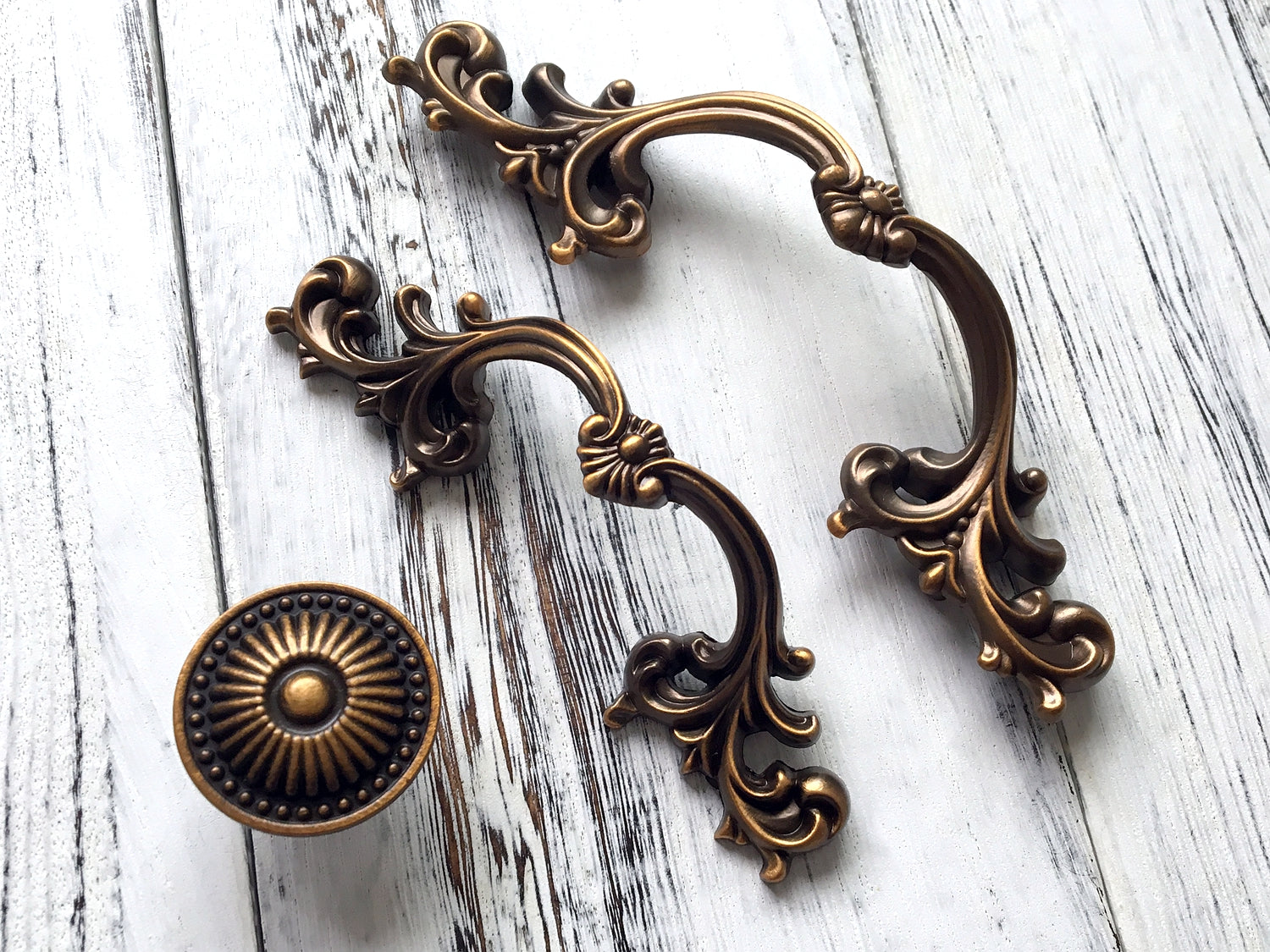 2.5" 3.75" Leafy Drawer Pull Handles, Antique Brass Copper, French Provincial Hardware 64 96 mm