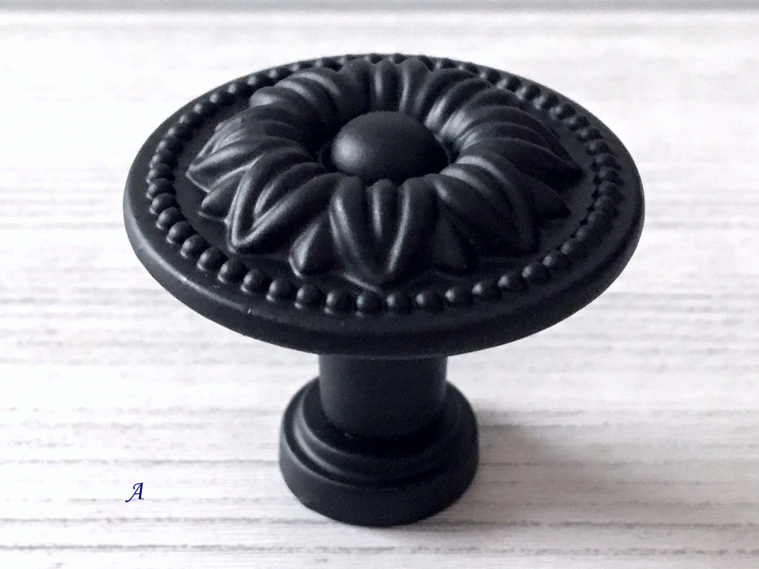 Elevate your furniture with these 3" and 3.75" centers black leafy drawer pulls and floral knobs. Crafted for both vintage and shabby chic styles, they provide a sturdy grip while adding elegant detail to drawers and cabinets. These pulls combine aesthetic charm with practical durability, making them an expert choice for restoring or enhancing classic home interiors.