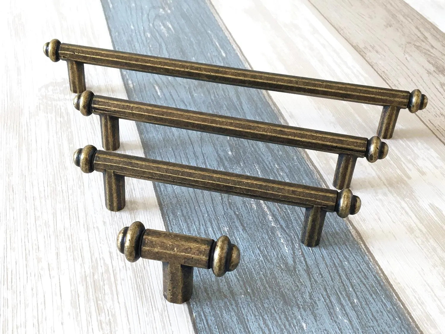 3.75" 5" 7.5" Centers Cabinet Bar Handles, Antique Bronze Kitchen Hardware, 96 128 192 mm Holes