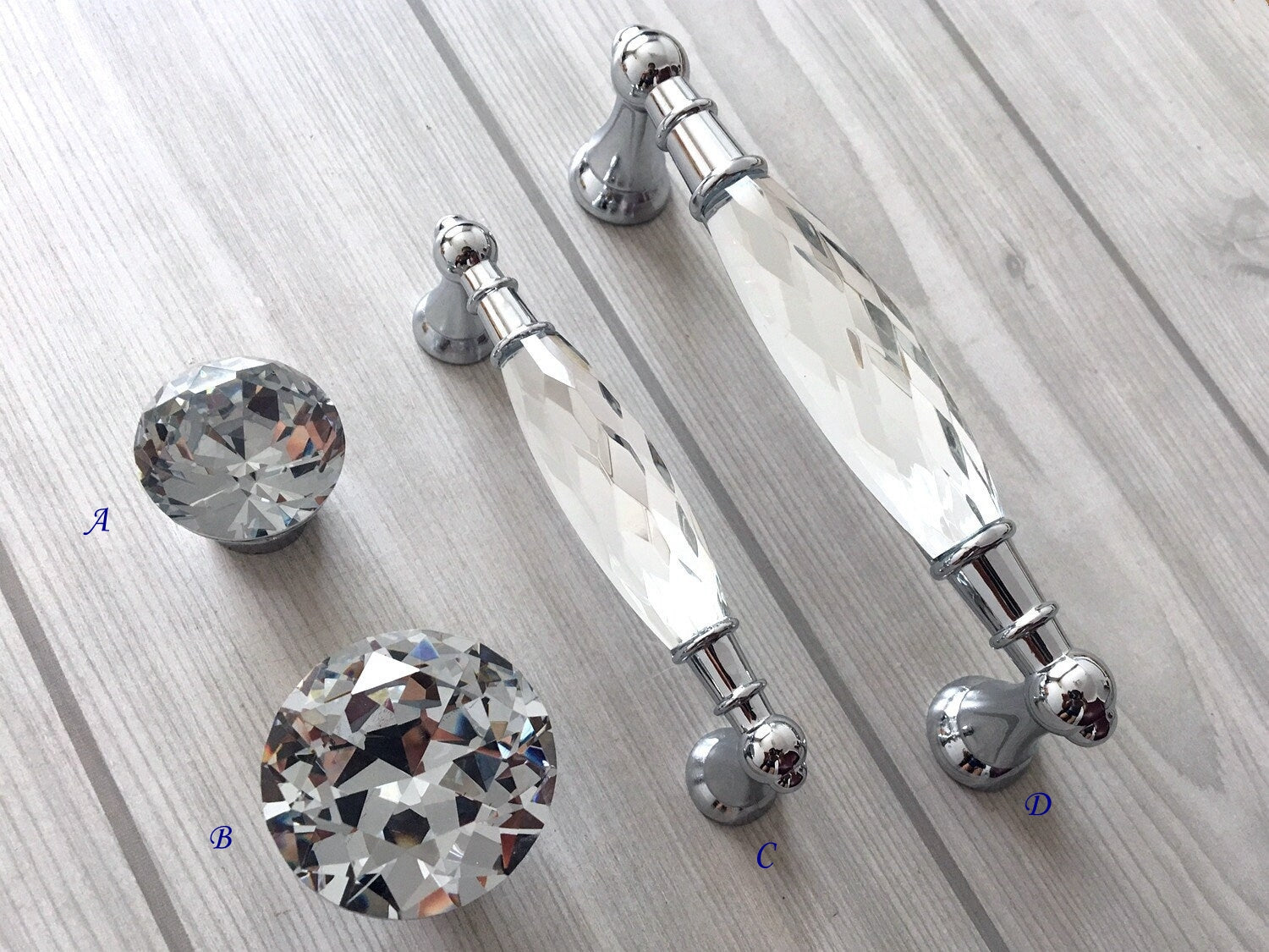 3.75" 5" Crystal Drawer Pull, Glass Cabinet Pulls, Modern Cupboard Handles