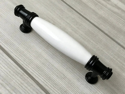 3.75" 5" Porcelain Drawer Pull Handle, White Black, Kitchen Cabinet Hardware