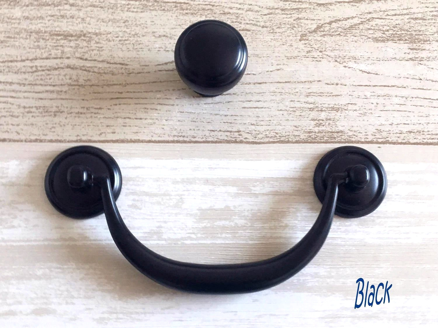 Enhance your furniture with these 4.25" and 4.5" vintage-style bail drawer pulls, available in black, antique bronze, and dark antique bronze finishes. Crafted to deliver a classic, timeless charm, these handles combine durability with elegant design, making them ideal for restoring cabinetry or adding a refined touch to your drawers. Their sturdy construction ensures reliable functionality while providing an authentic vintage aesthetic. Perfect for both traditional and rustic interiors seeking subtle sophistication.