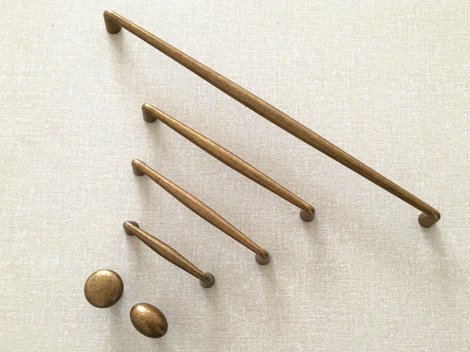 Verschönern Sie Ihre Küchenrenovierung mit diesen antiken Schrank- und Schubladengriffen aus Bronze, erhältlich in kleinen und großen Größen. Ihr warmes Bronze-Finish verleiht zeitlose Eleganz, während die glatte Textur für eine komfortable Handhabung sorgt. Diese Griffe sind auf Langlebigkeit und Stil ausgelegt und verleihen jedem Schrank eine edle Note.