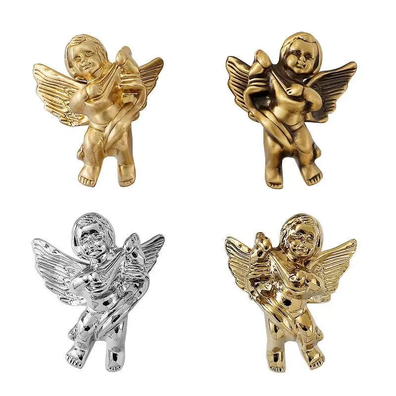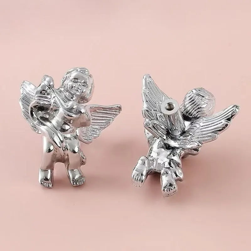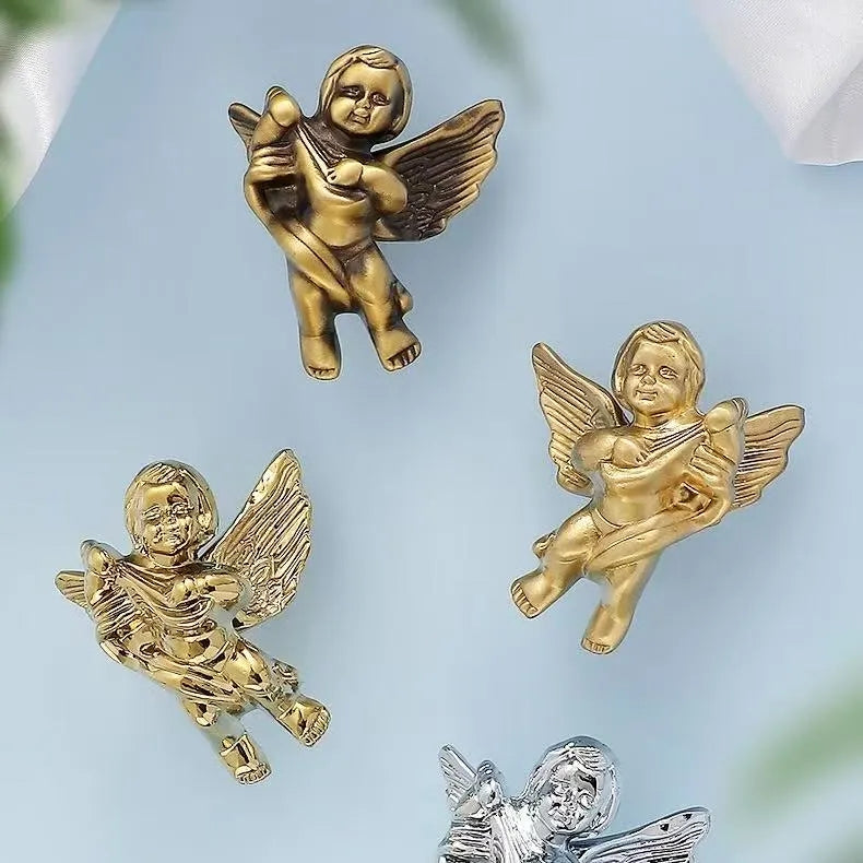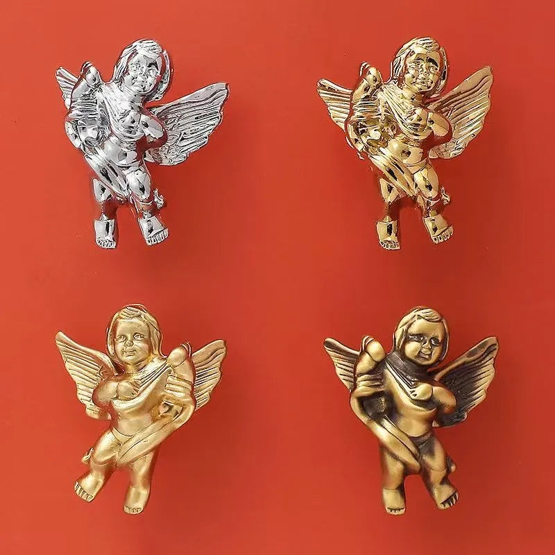 Crafted from solid brass, these Angel Cupid Design Cabinet Knobs feature delicate cupid figures facing opposite directions, ideal for paired installation. Available in polished brass, brushed brass, polished chrome, and antique bronze finishes, they combine durability with elegant style to enhance cabinetry with a refined, timeless look.