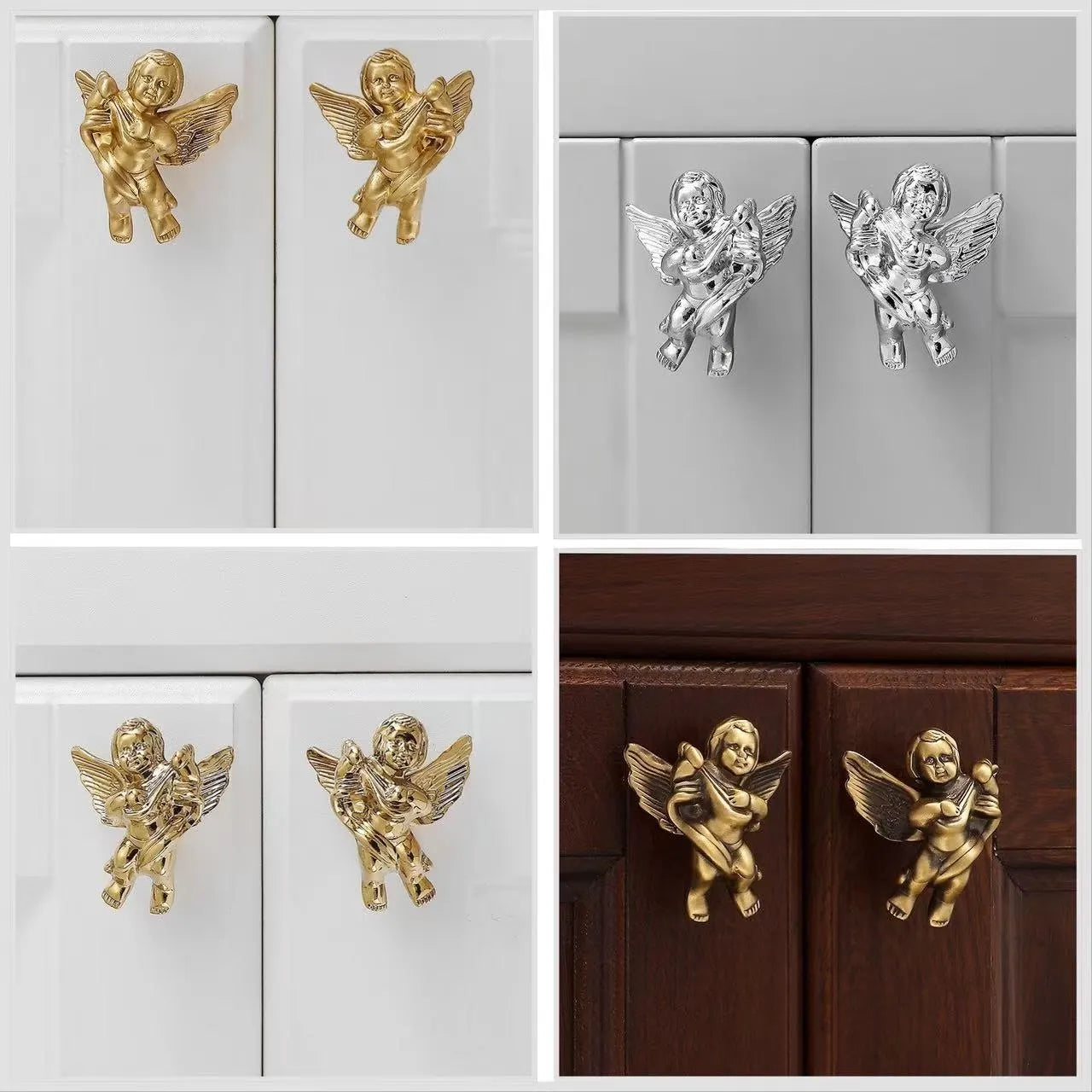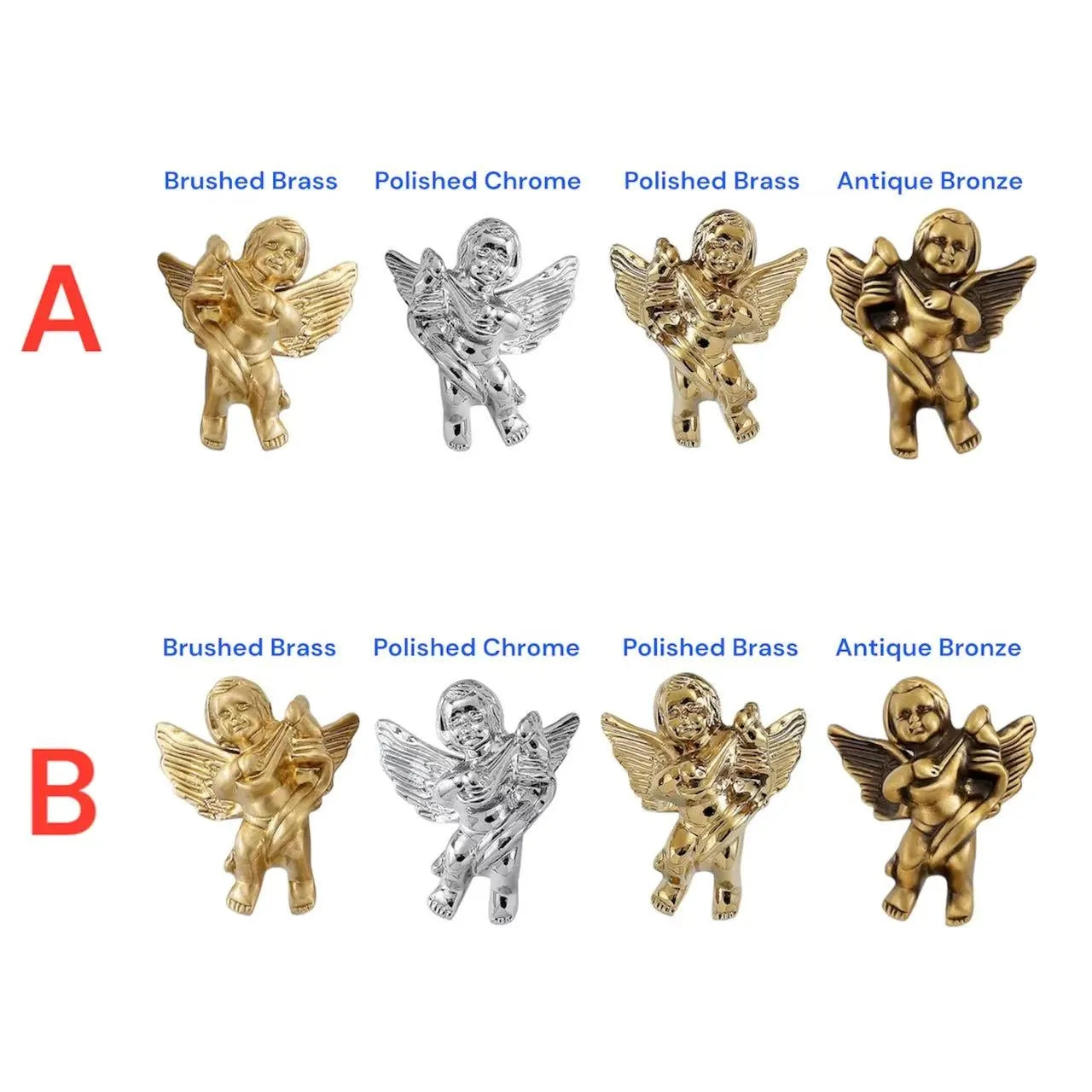 Angel Cupid Design Cabinet Knobs, Solid Brass, Gold, Silver and Bronze
