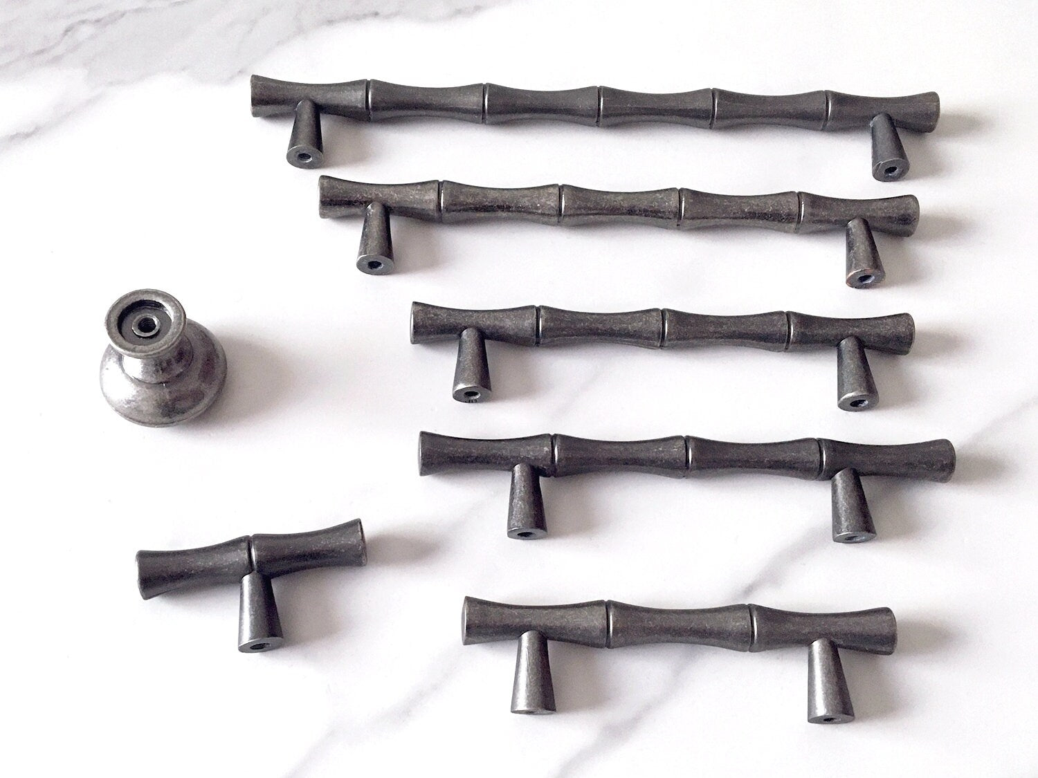 Antique Pewter Bamboo Cabinet Pulls and Drawer Knobs