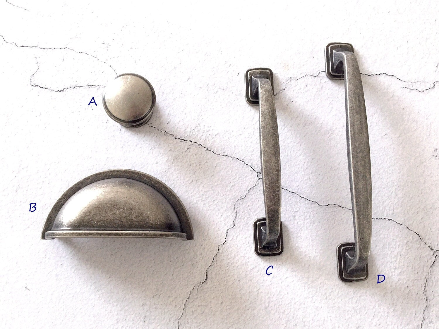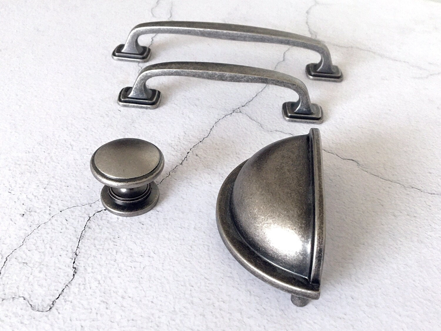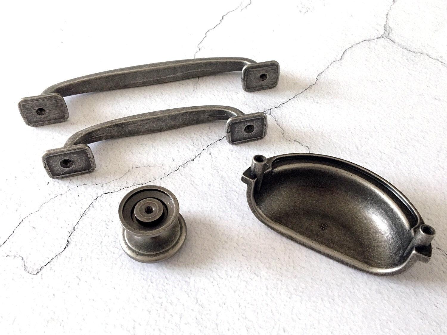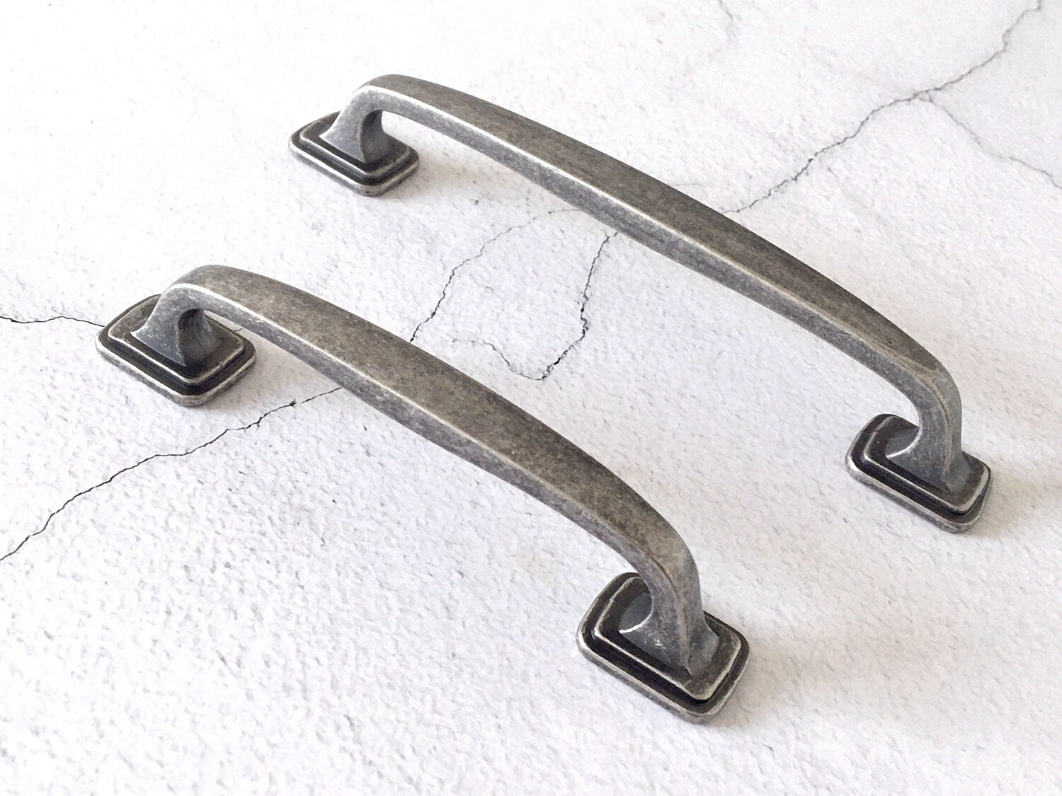Verschönern Sie Ihre Küchenschränke mit diesen antiken Zinn-Schubladengriffen. Mit einem Lochabstand von 8,9 cm und 10,2 cm verleihen sie Ihrer Küche eine einzigartige und elegante Note, die sowohl traditionelle als auch Vintage-Dekore perfekt ergänzt. Diese Griffe sind auf Langlebigkeit und Stil ausgelegt und verleihen Ihren Schränken Funktionalität und eine edle Ästhetik.