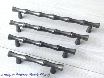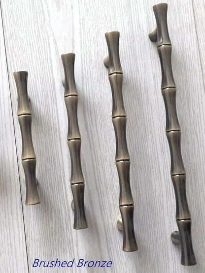 Bamboo Cabinet Pulls and Drawer Knobs, Gold Nickel Bronze Silver Pewter, Kitchen Hardware