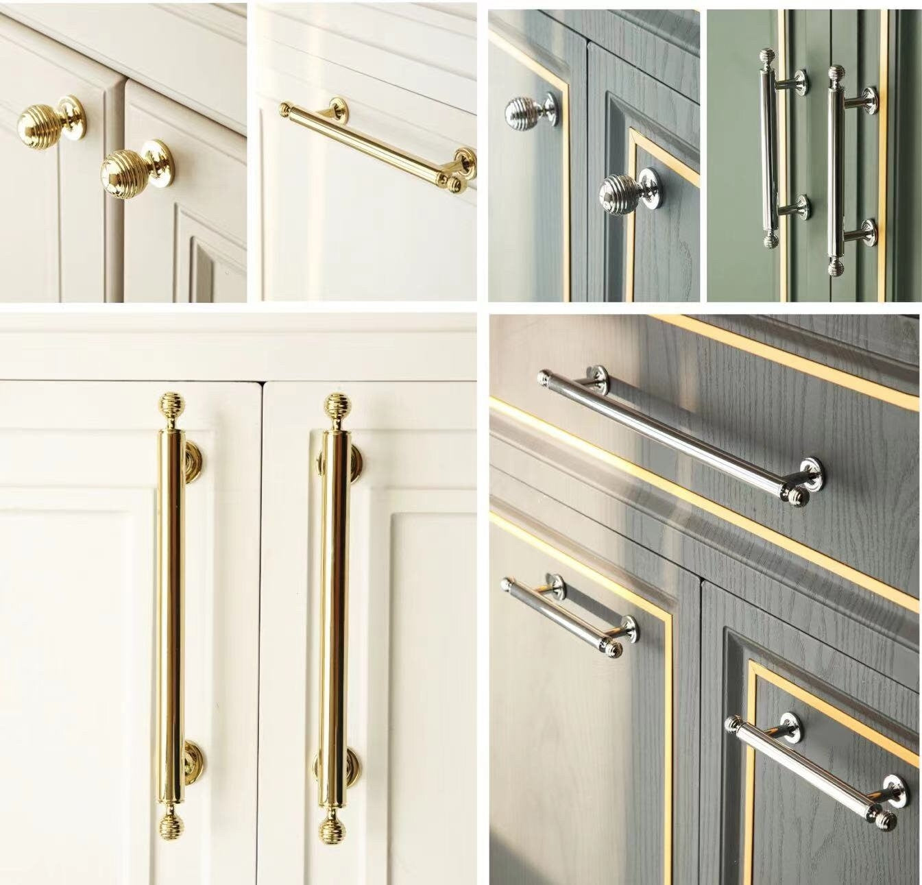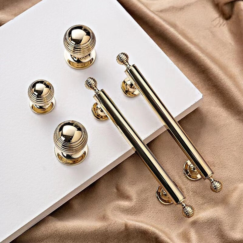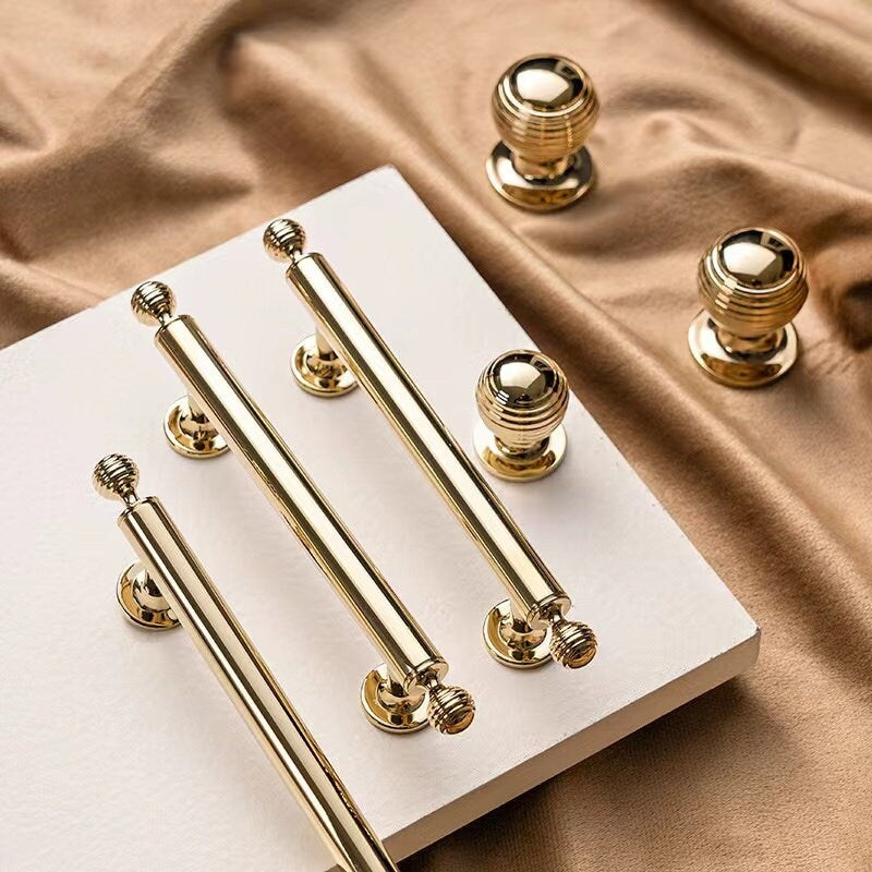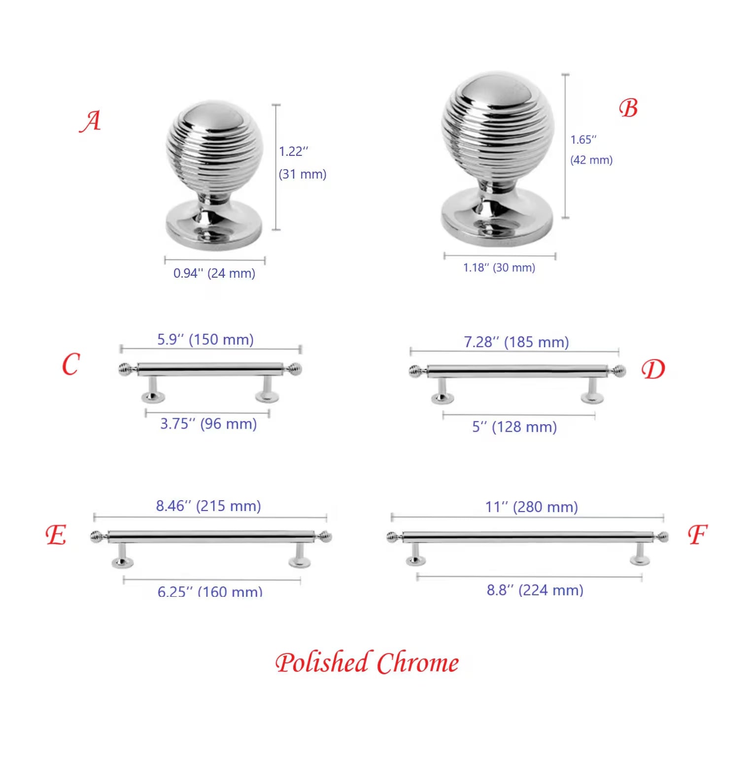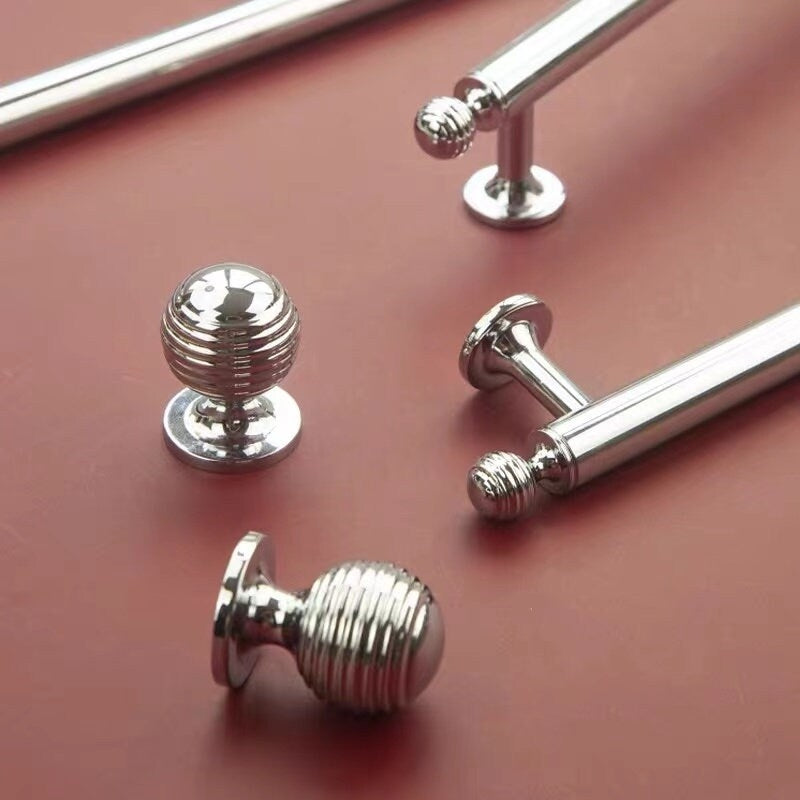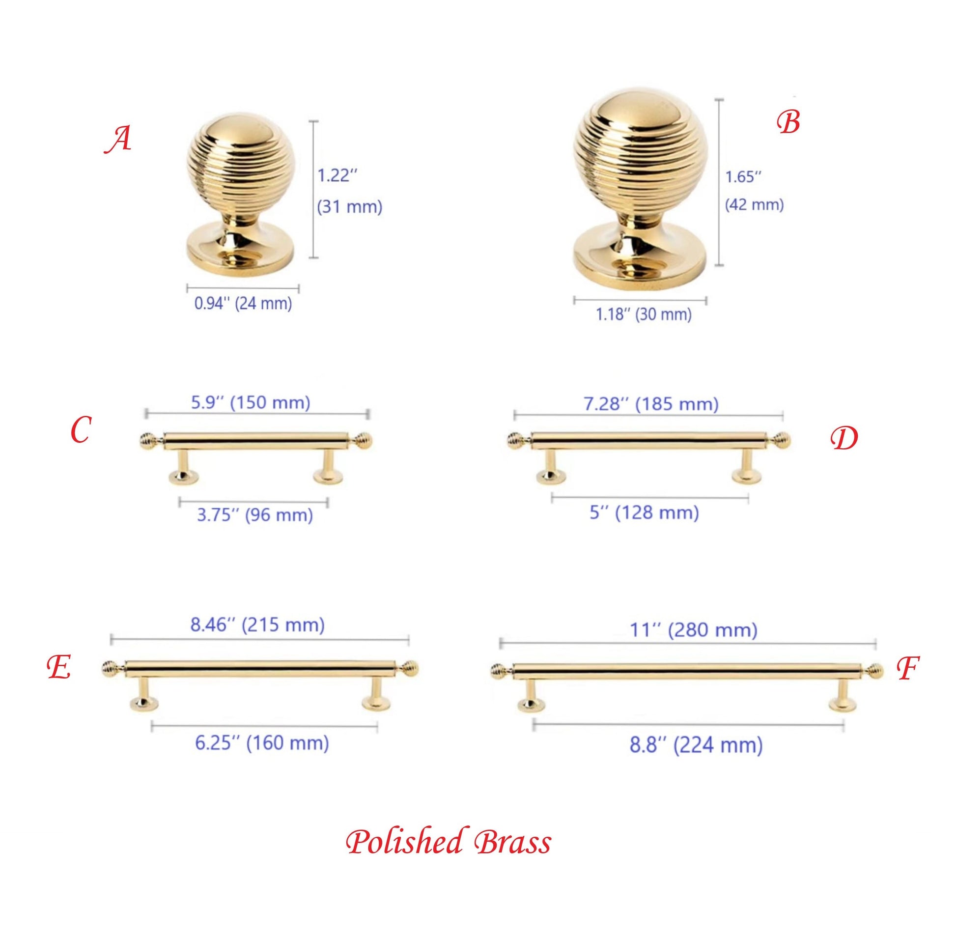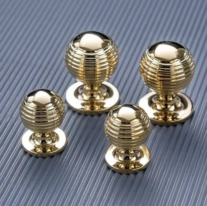 Beehive Brass Cabinet Pulls and Knobs, Polished Gold and Chrome, Luxurious