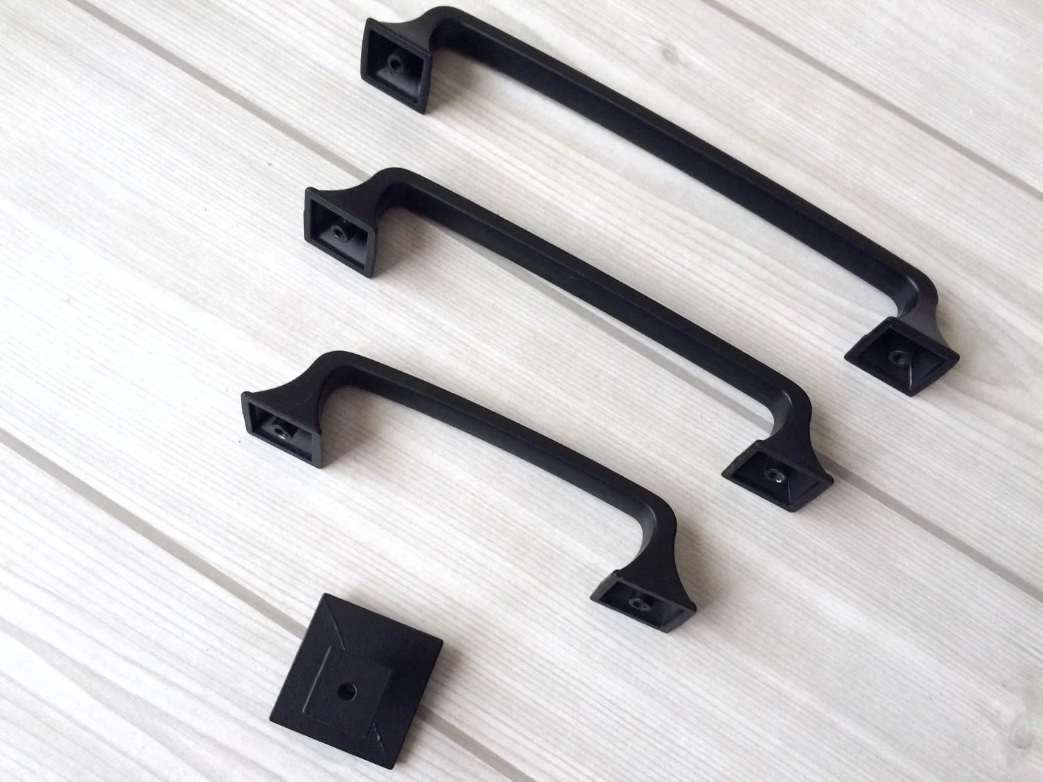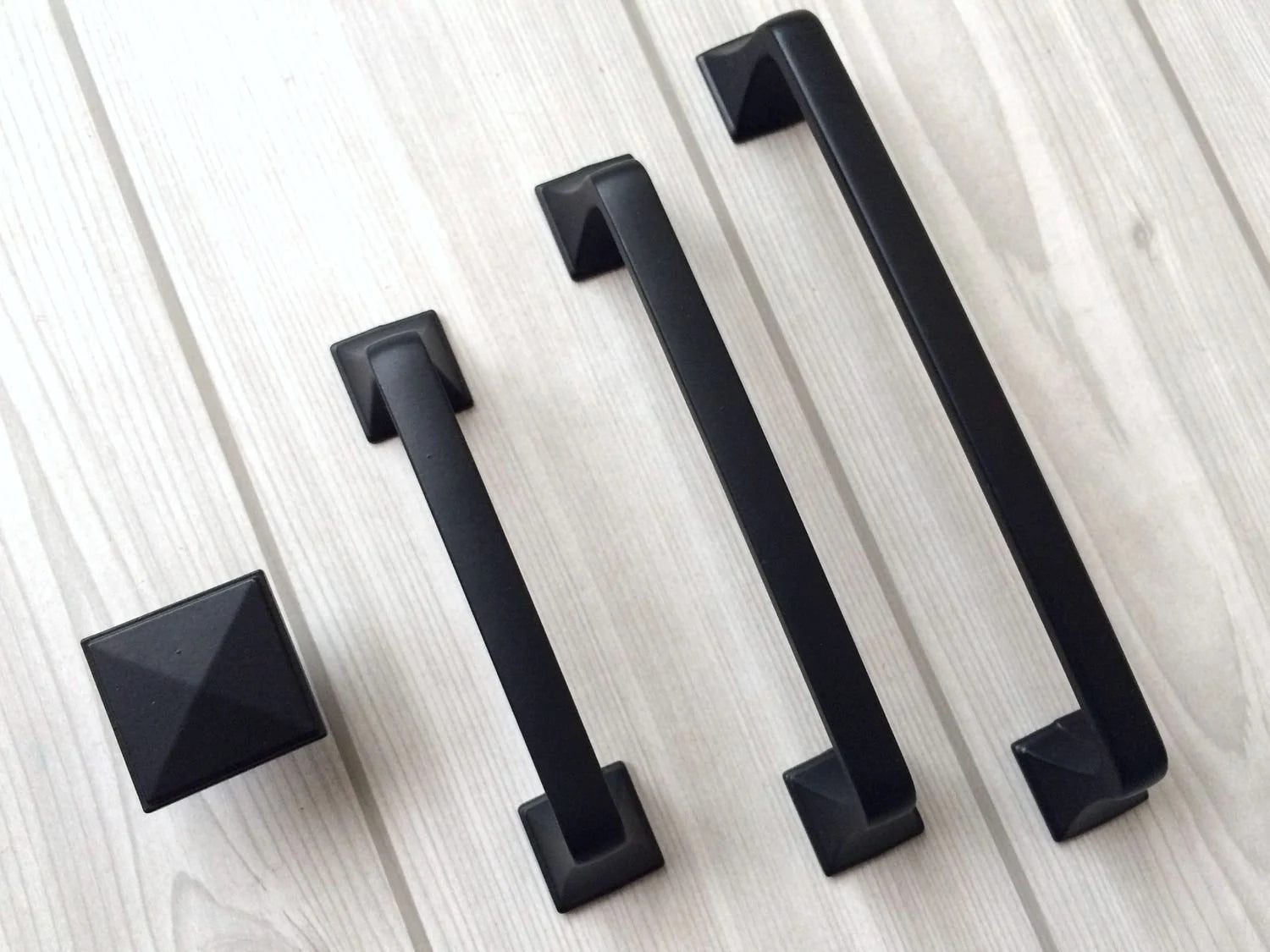Black Cabinet Pulls, Square Knobs, Minimalist Kitchen Hardware