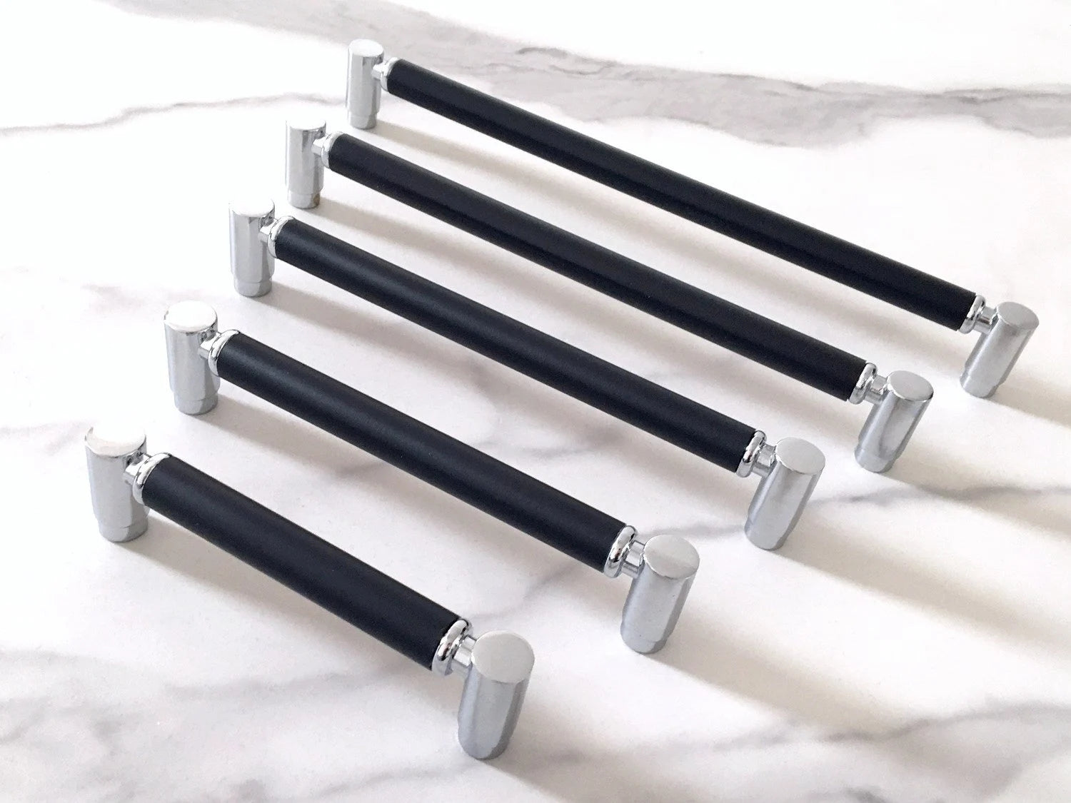 Elevate your kitchen with these cabinet pulls and knobs designed for minimalist aesthetics. Crafted to provide a sleek, modern look, this hardware combines durability with understated elegance. Their clean lines and matte black finish seamlessly complement contemporary kitchen designs, offering reliable grip and functionality while enhancing your cabinetry's style.