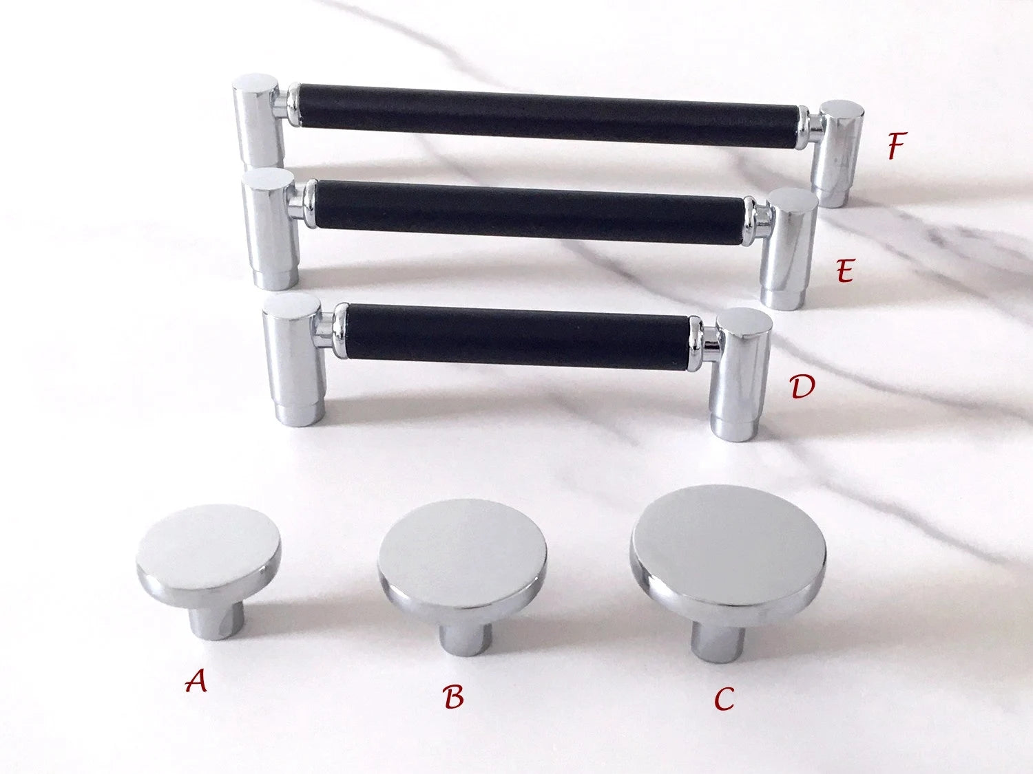 Black Silver Cabinet Pulls, Circle Knobs, Minimalist Kitchen Hardware