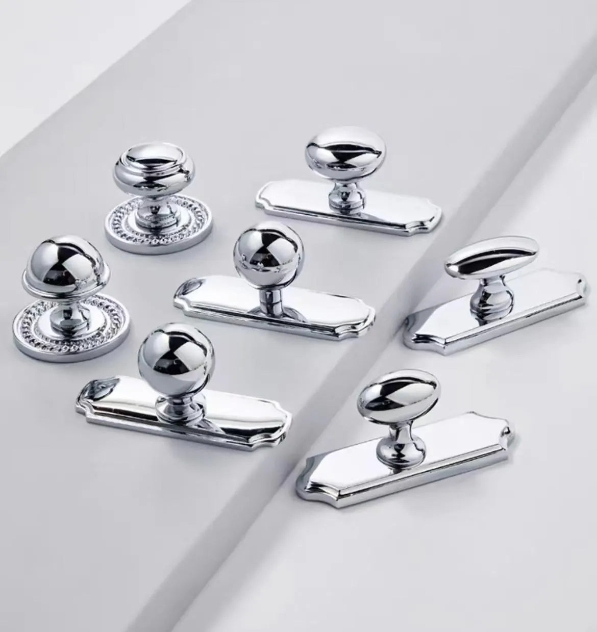 Schrankknopf aus poliertem Chrom mit Rückplatte für ein elegantes, modernes Dekor