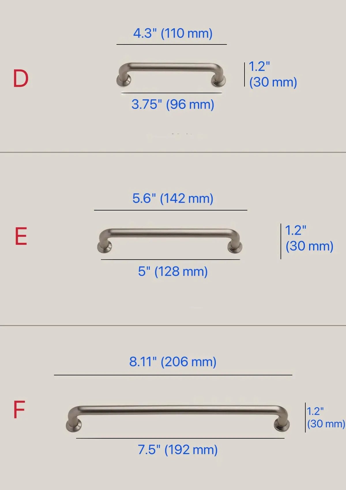 Mounting Screws: 1" (25 mm) fixing screws included. (Please advise the thickness of your drawer front, we will send you appropriate screws.)