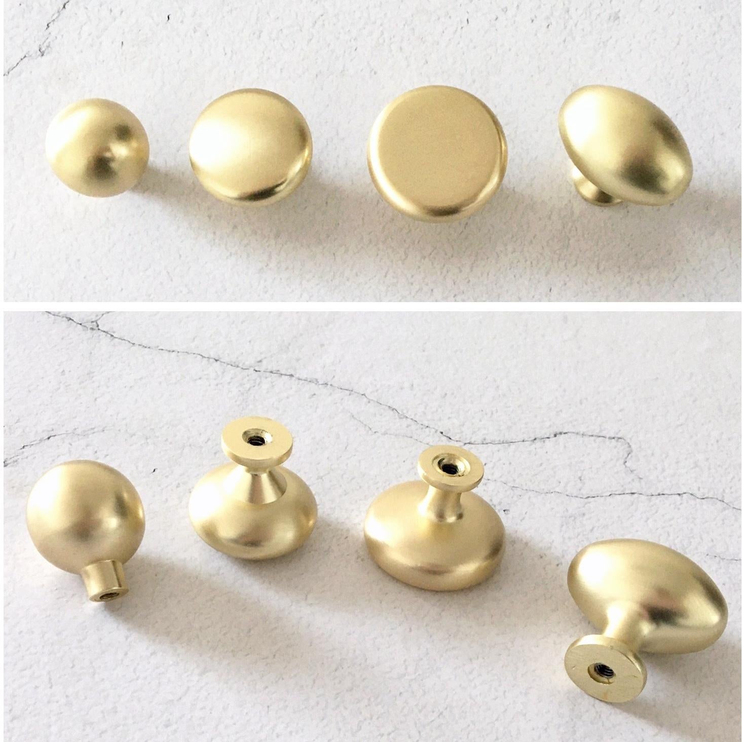 Brushed Gold Cabinet Pull, Round / Egg Knob, Lynns Hardware