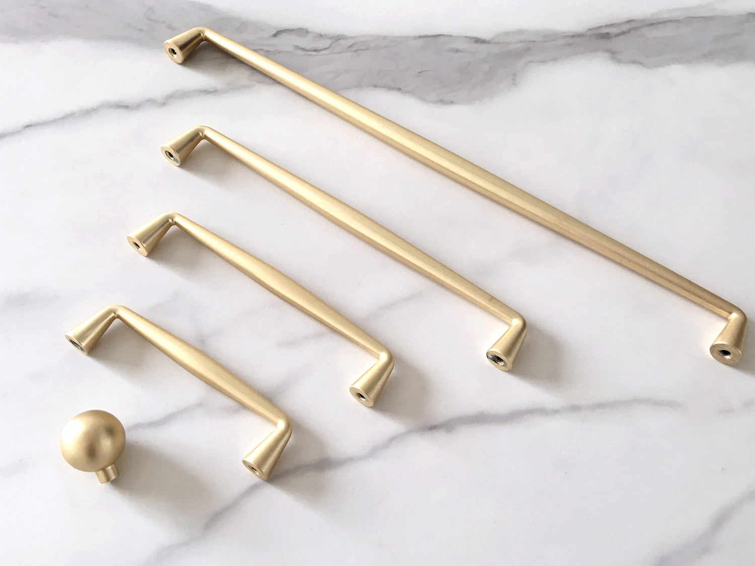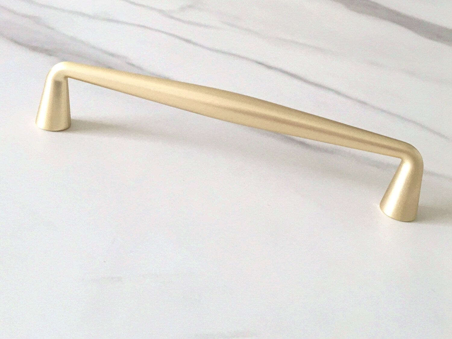 Enhance your kitchen renovation with these brushed gold cabinet pulls and drawer handles, available in both small and large sizes. Their warm gold finish adds timeless elegance, while the smooth texture ensures comfortable handling. Designed for durability and style, these handles provide a refined touch to any cabinetry.