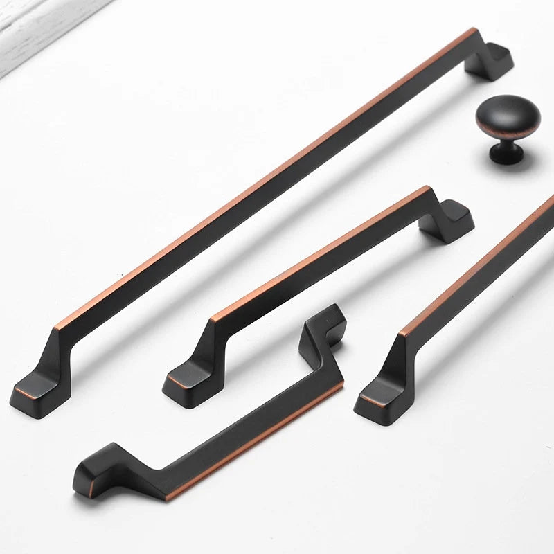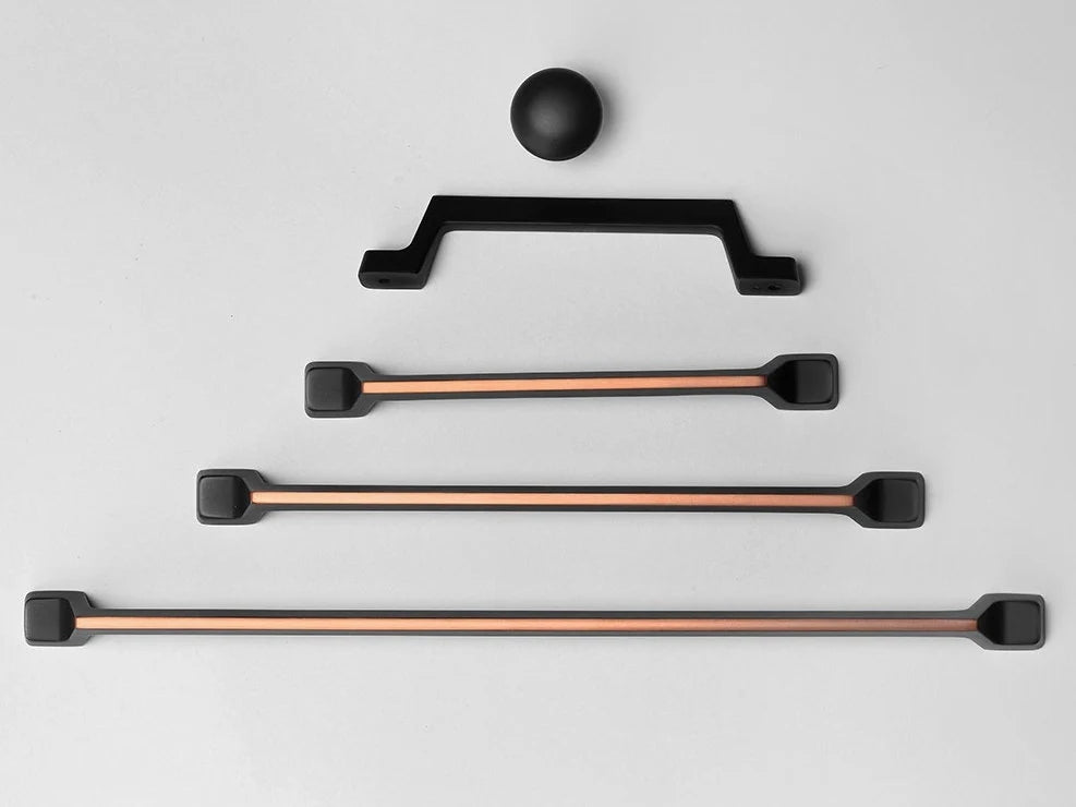 Cabinet Pulls, Matte Black with Copper Highlights, MCM Retro Kitchen Hardware