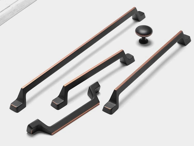 These black-copper cabinet pull handles combine modern design with mid-century style, perfect for upgrading kitchen hardware with a sophisticated touch.
