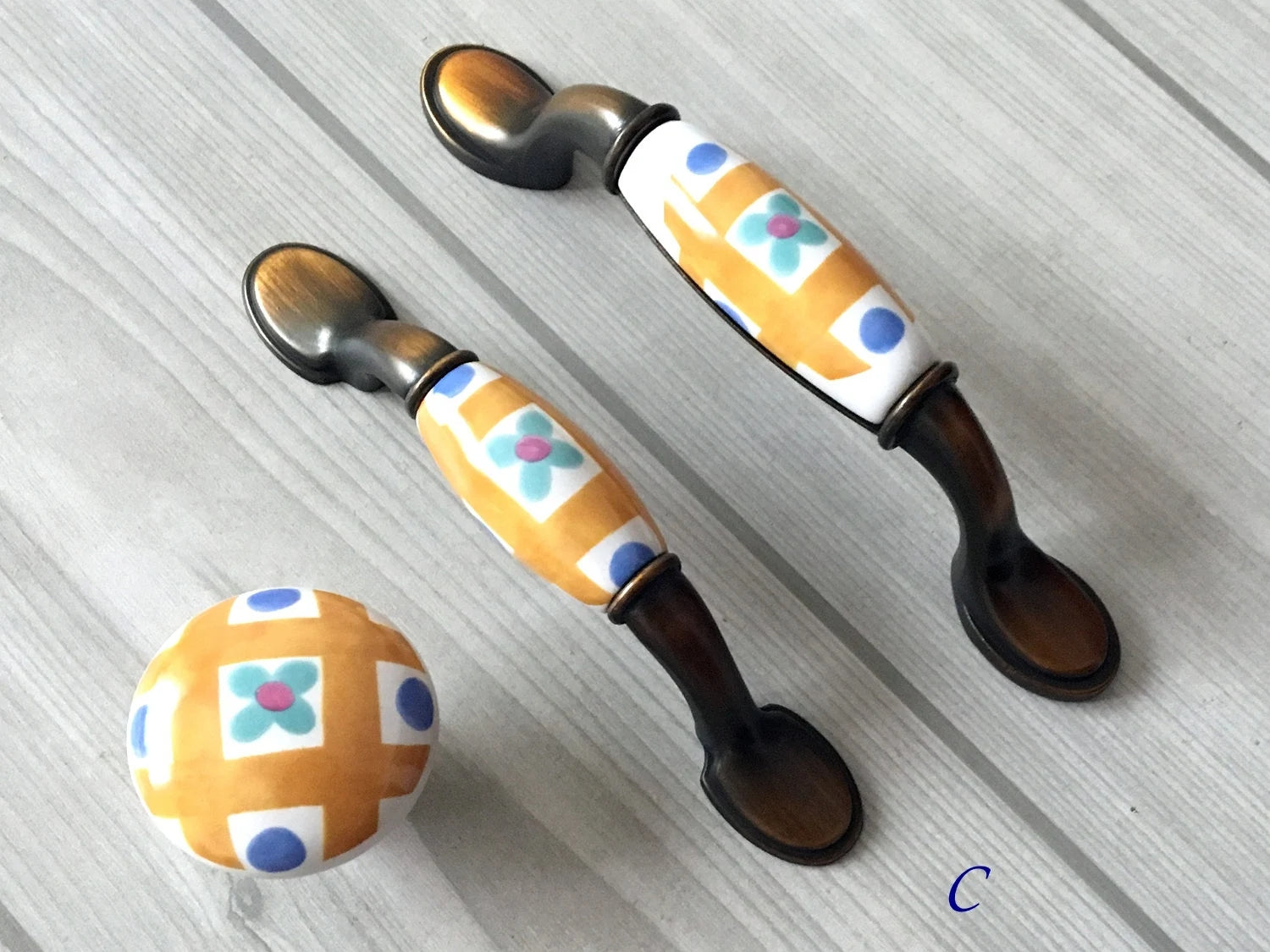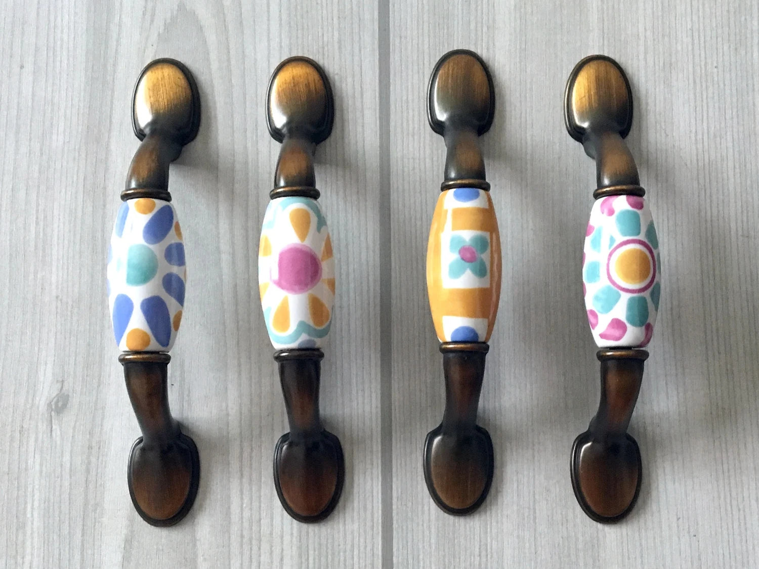 Colorful Porcelain Drawer Pulls, 3" 3.75" Centers, 4 Designs