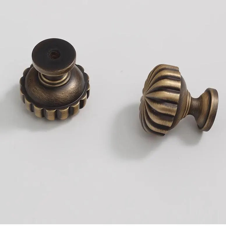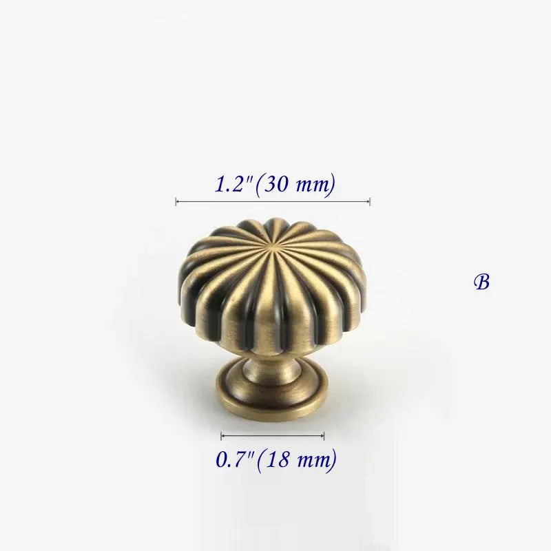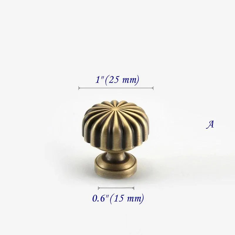Kürbisknauf und Schubladengriff aus gealterter Bronze mit Ginkgoblatt und Sunburst-Design