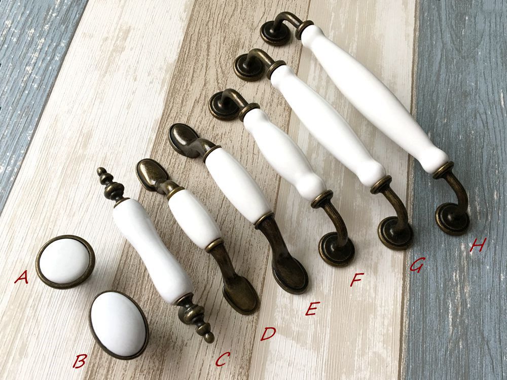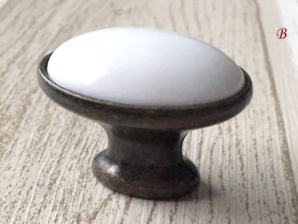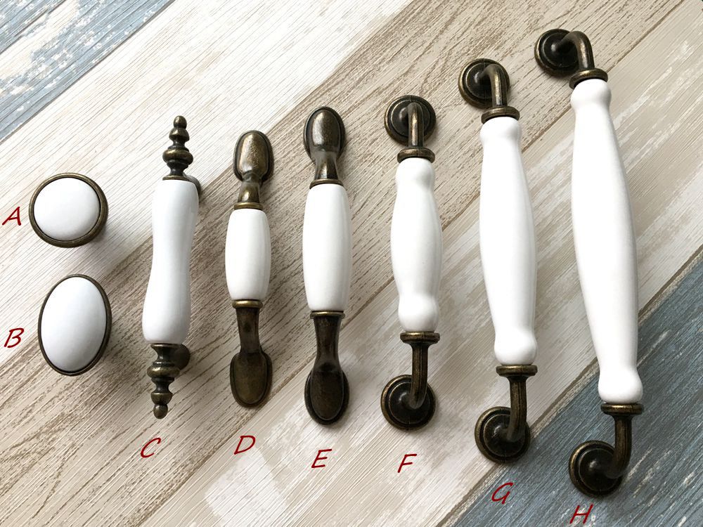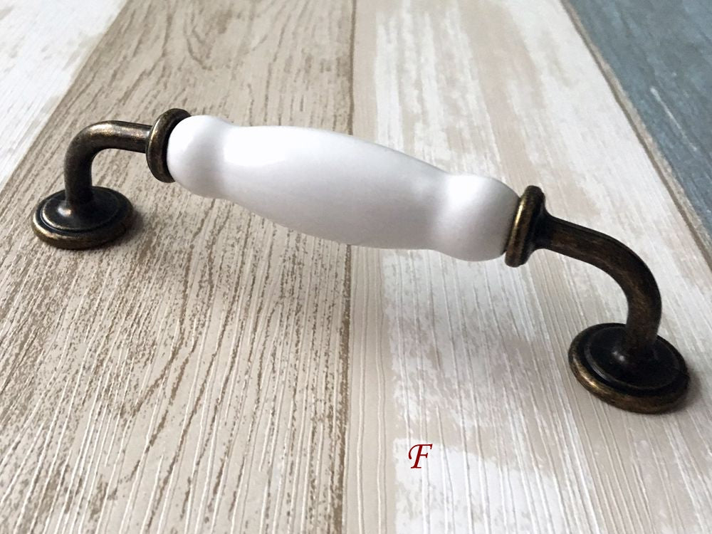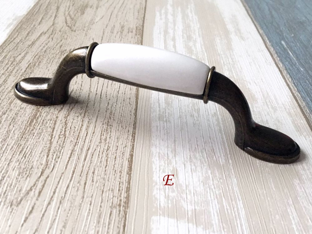 Schubladengriffe Schrankgriffe Keramik Weiß Antik Bronze | Lynns Hardware