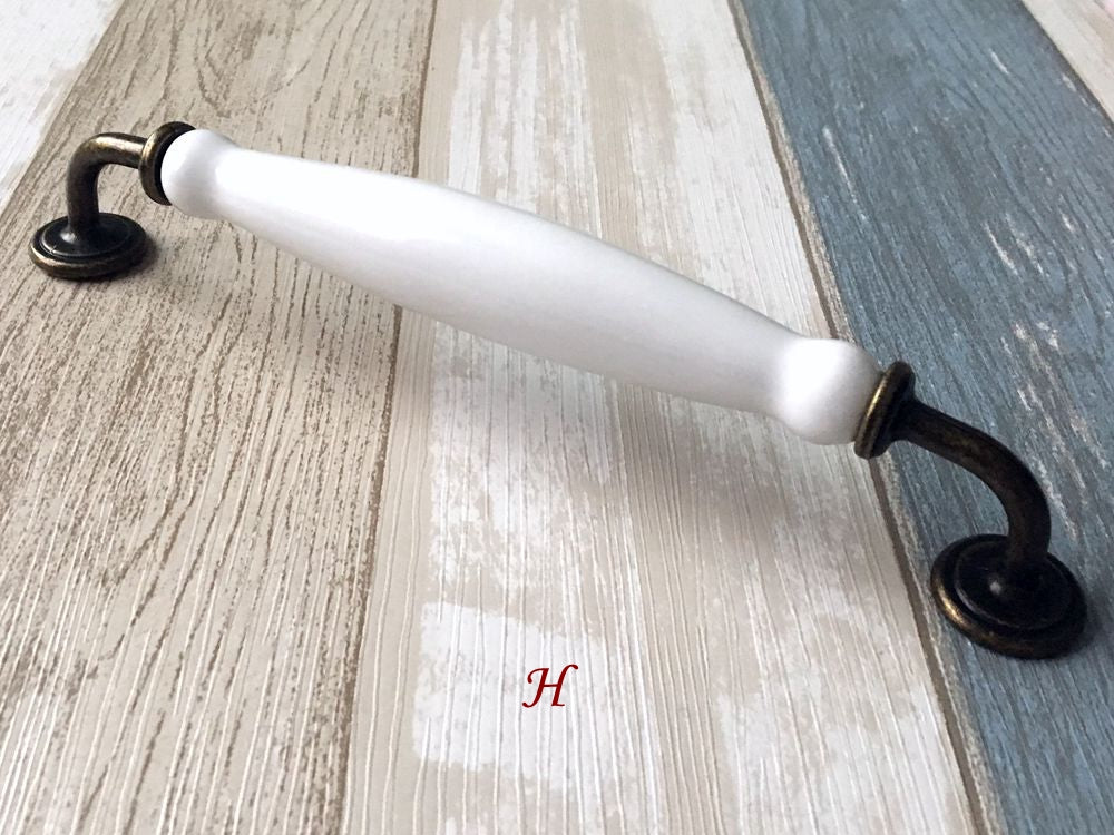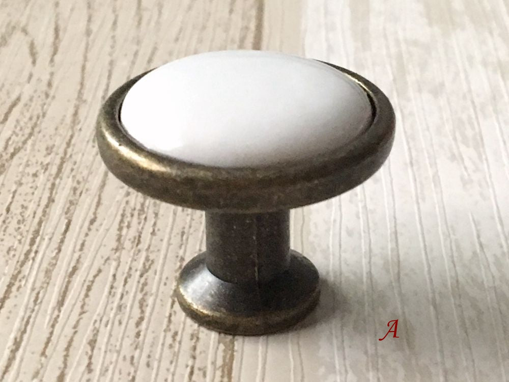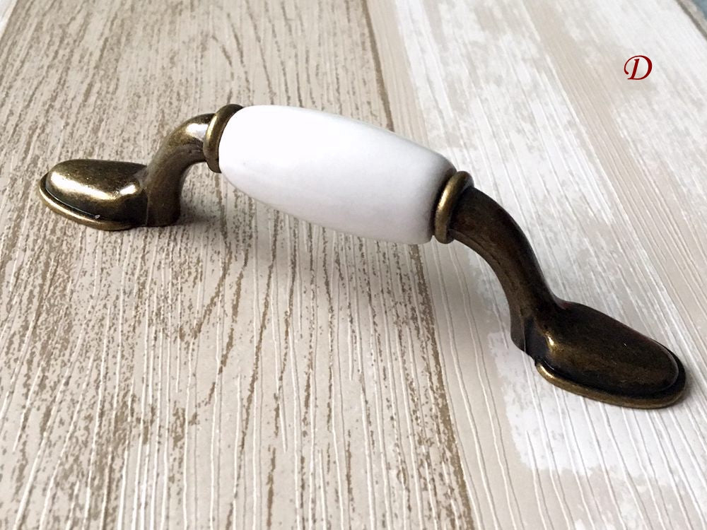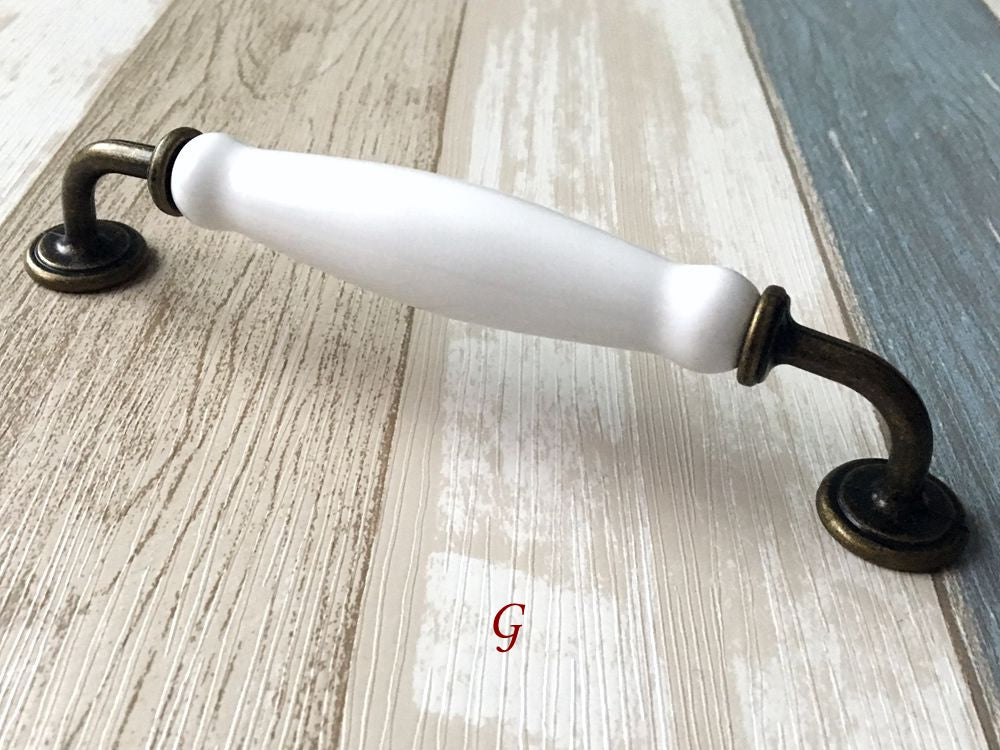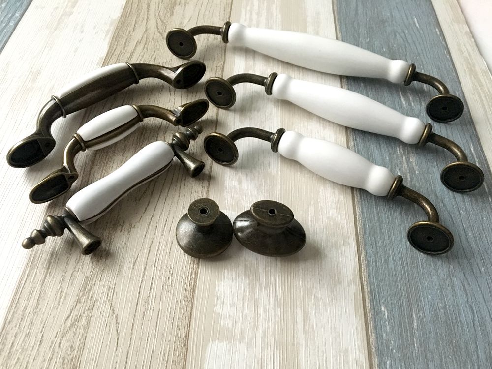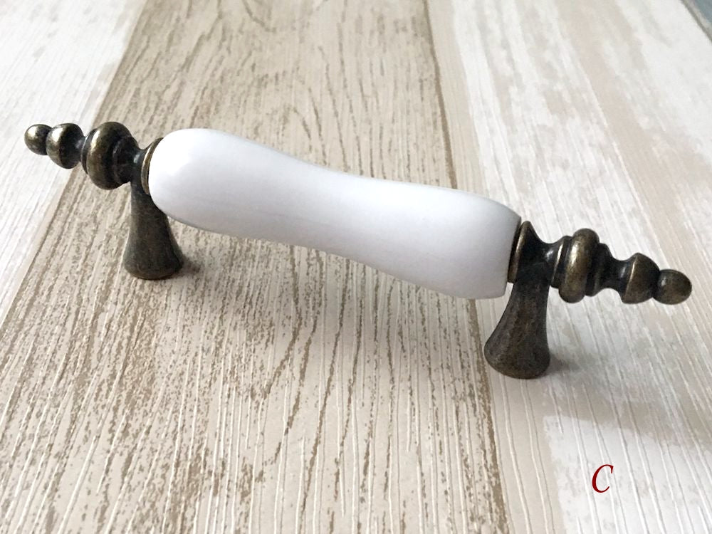 Schubladengriffe Schrankgriffe Keramik Weiß Antik Bronze | Lynns Hardware