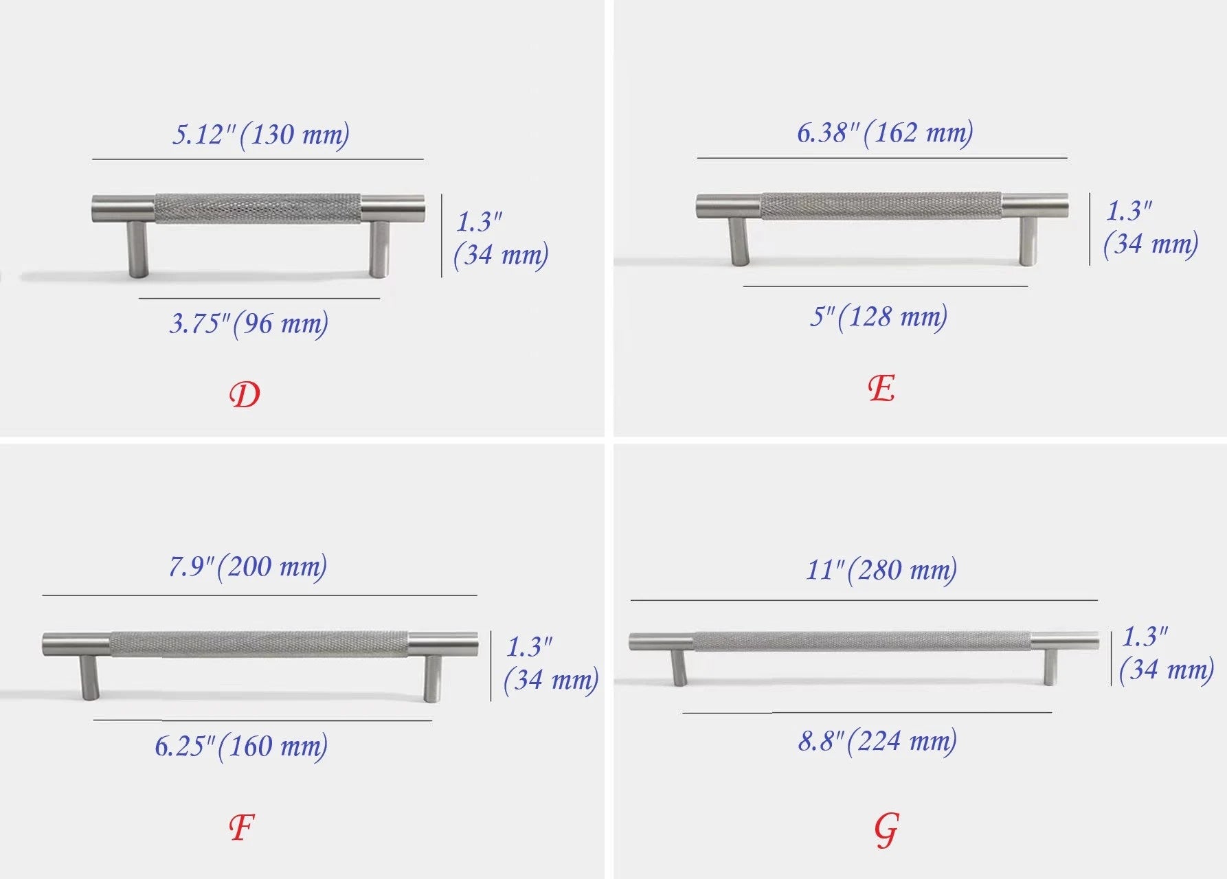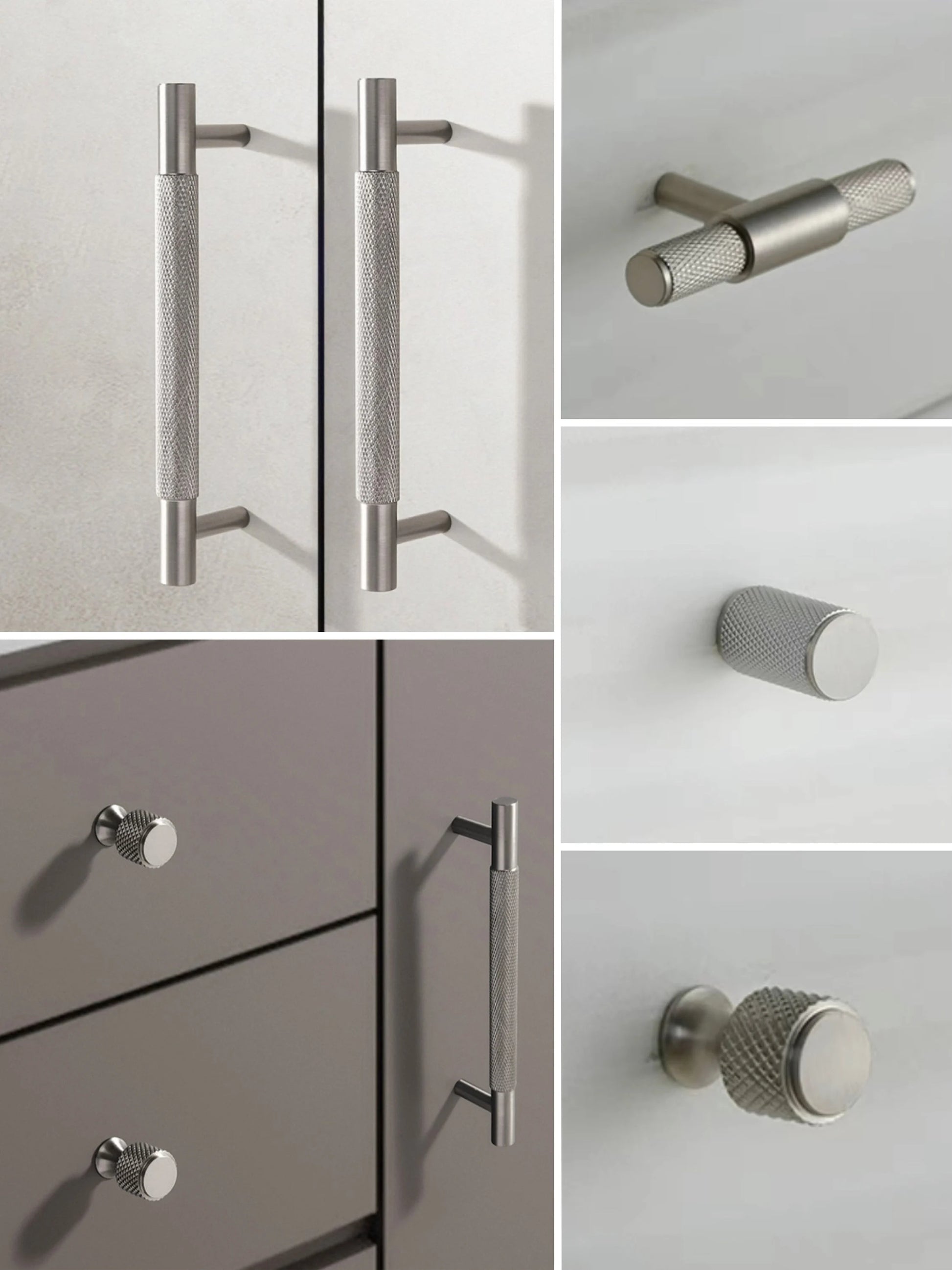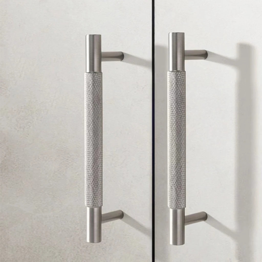 Crafted from solid brass with a brushed nickel finish, these knurled cabinet bar pulls combine durability with a refined modern aesthetic. Their textured grip ensures ease of use while adding subtle visual interest to kitchen cabinets or drawers. Ideal for contemporary interiors, they enhance functionality without compromising on style.