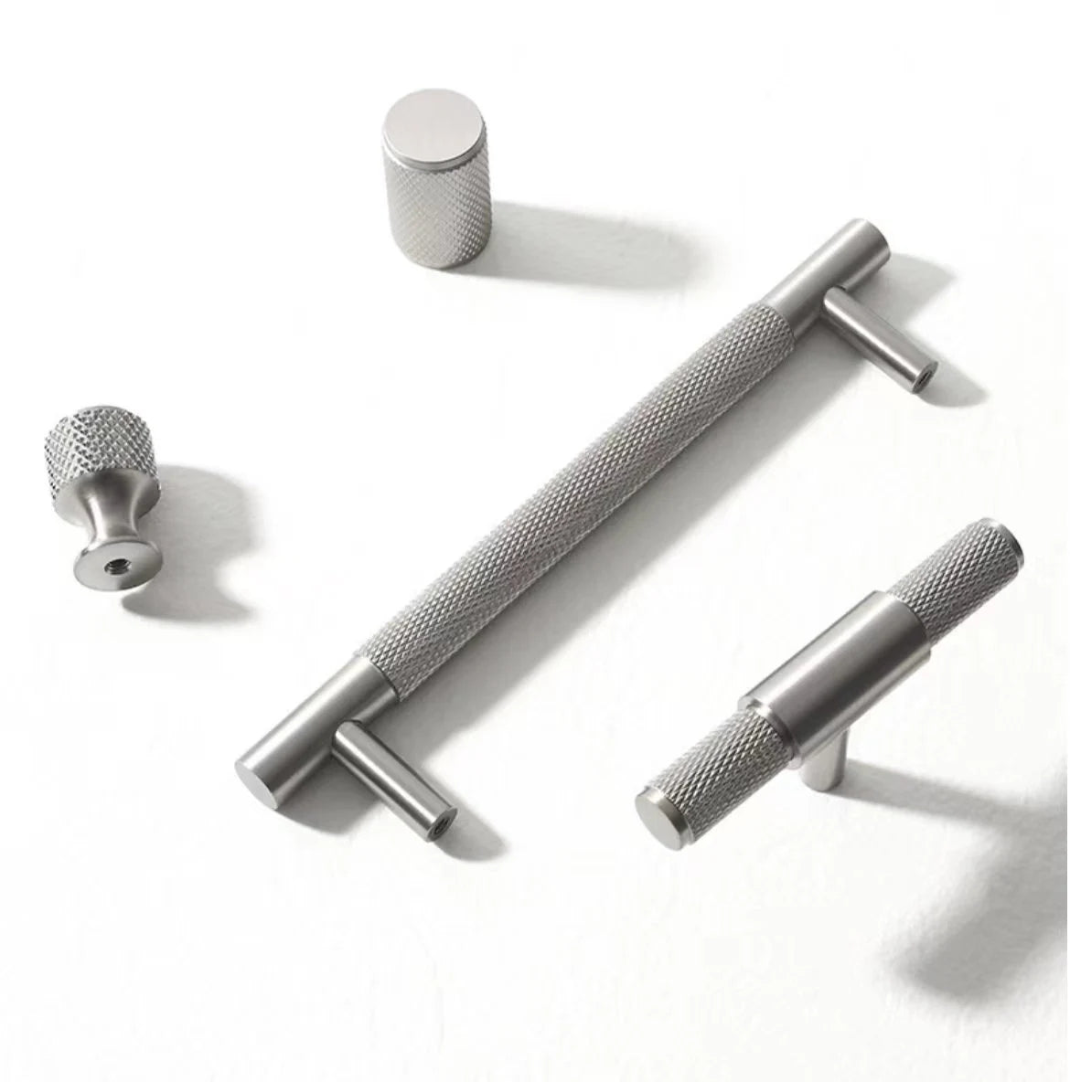 Knurled Cabinet Bar Pulls Solid Brass, Brushed Nickel, Modern Kitchen Hardware
