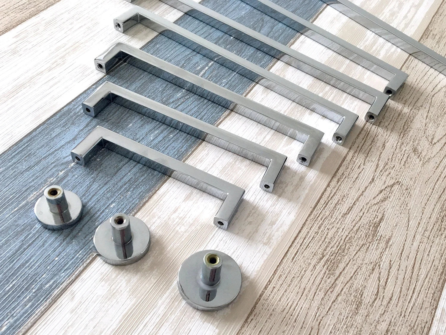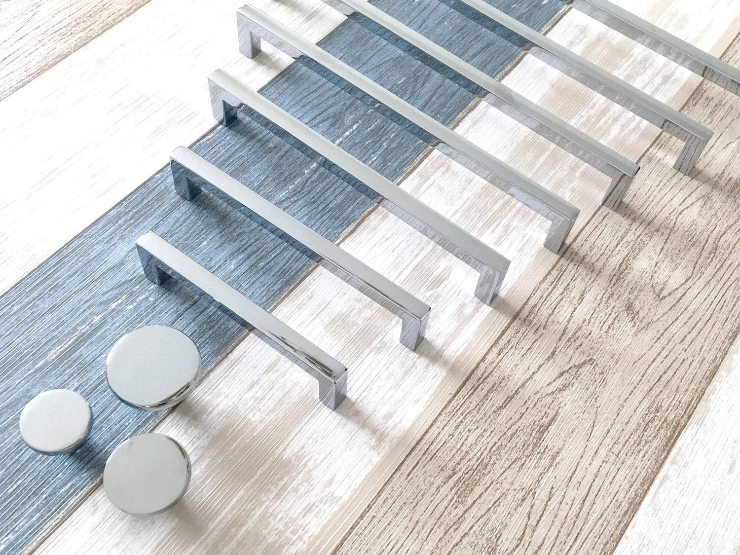 Upgrade your kitchen with these polished chrome cabinet pulls featuring a sleek square design paired with minimalist circle knobs. Crafted for a modern aesthetic, their slim profile adds subtle sophistication while ensuring comfortable grip and durability. Ideal for contemporary spaces seeking clean lines and functional hardware that complements any cabinetry style.