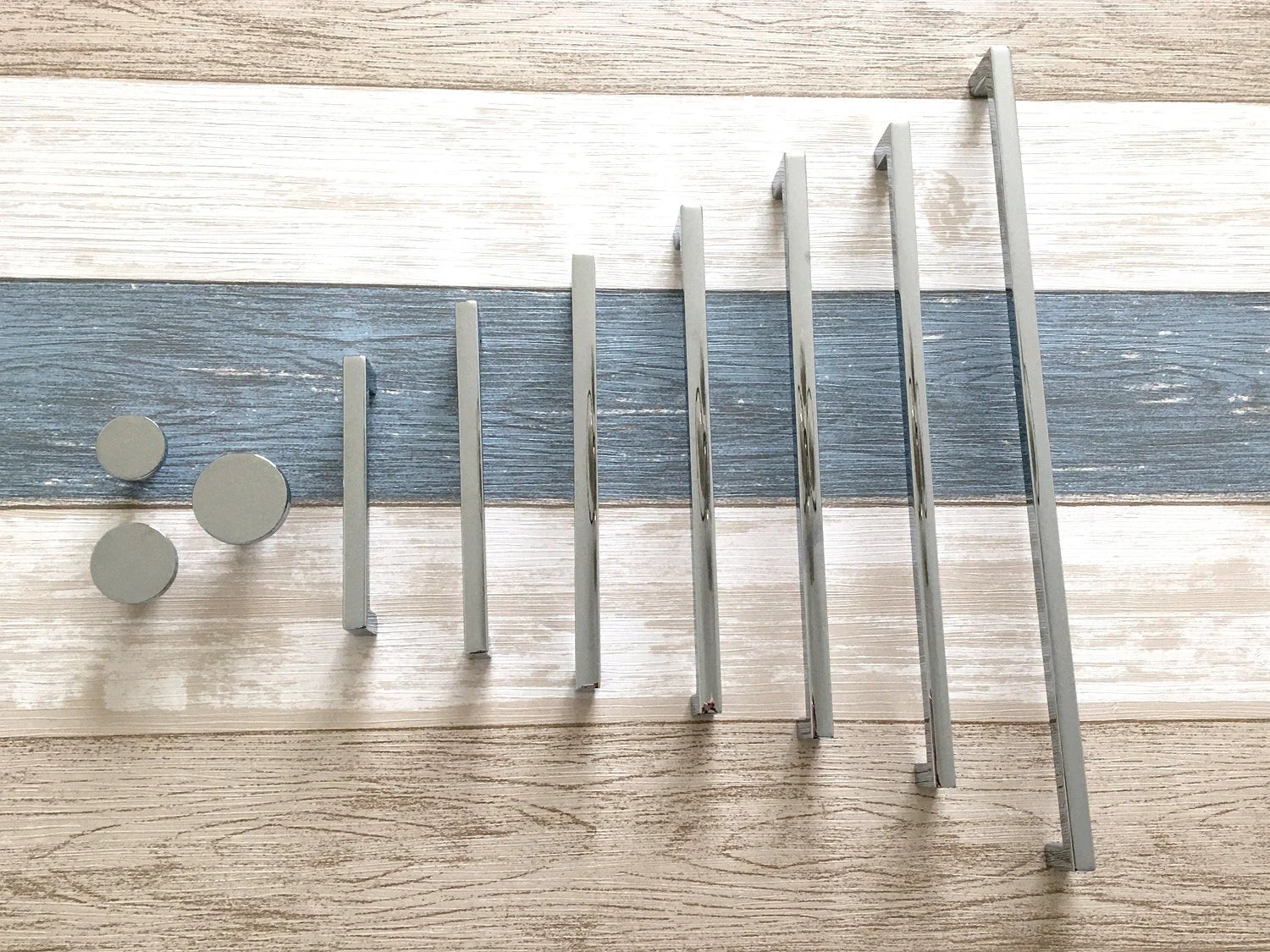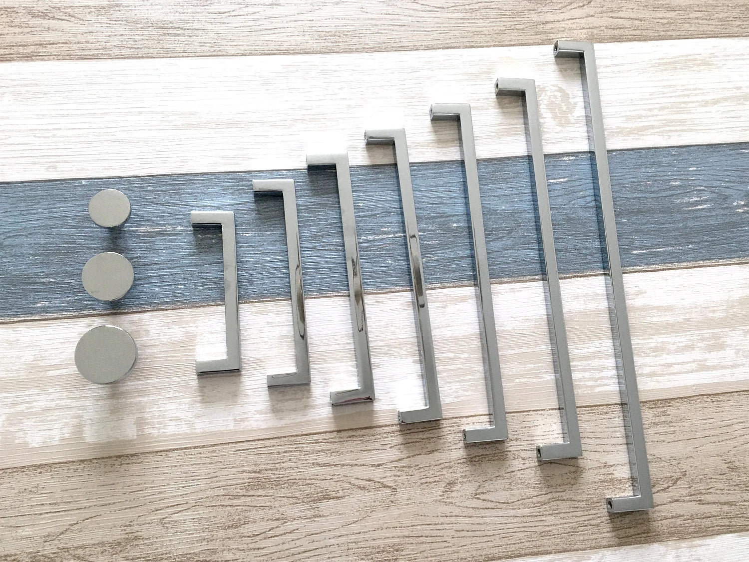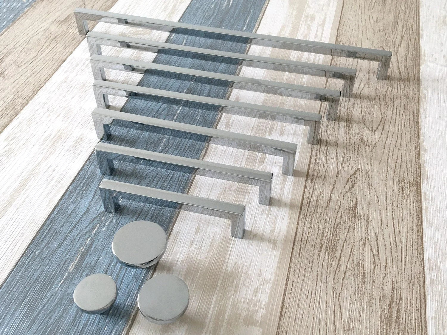 Slim Square Cabinet Pulls, Circle Drawer Knobs, Polished Chrome, Modern Kitchen Hardware