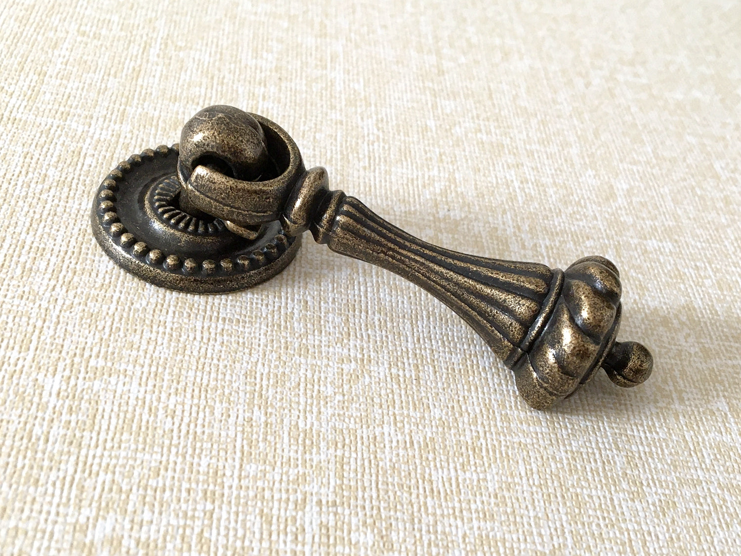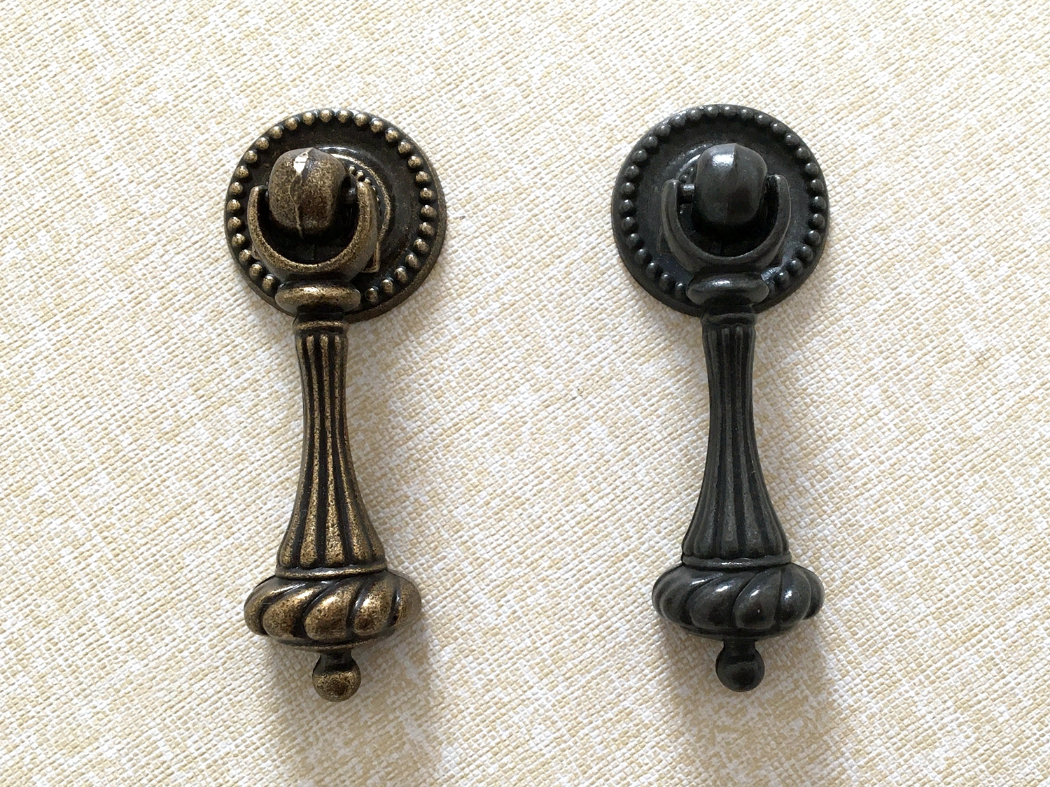 Vintage Style Pendant Drawer Pull, Teardrop Cabinet Knob, Antique Bronze Black Hardware