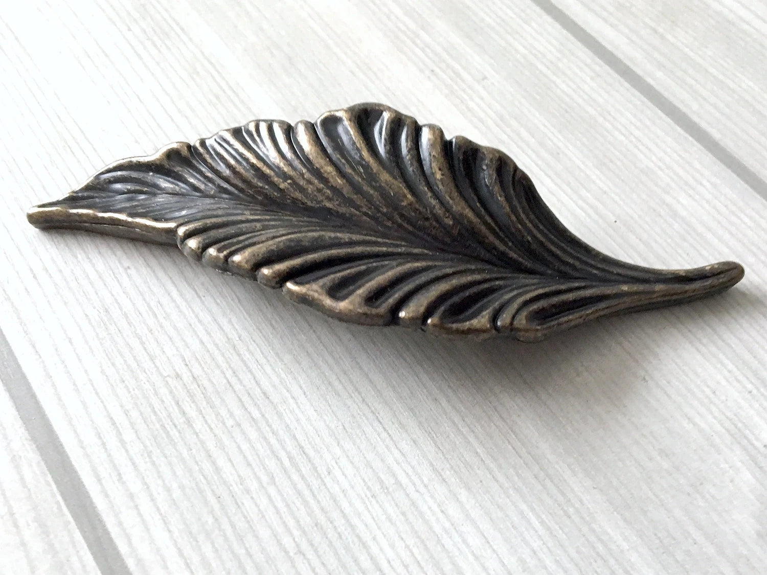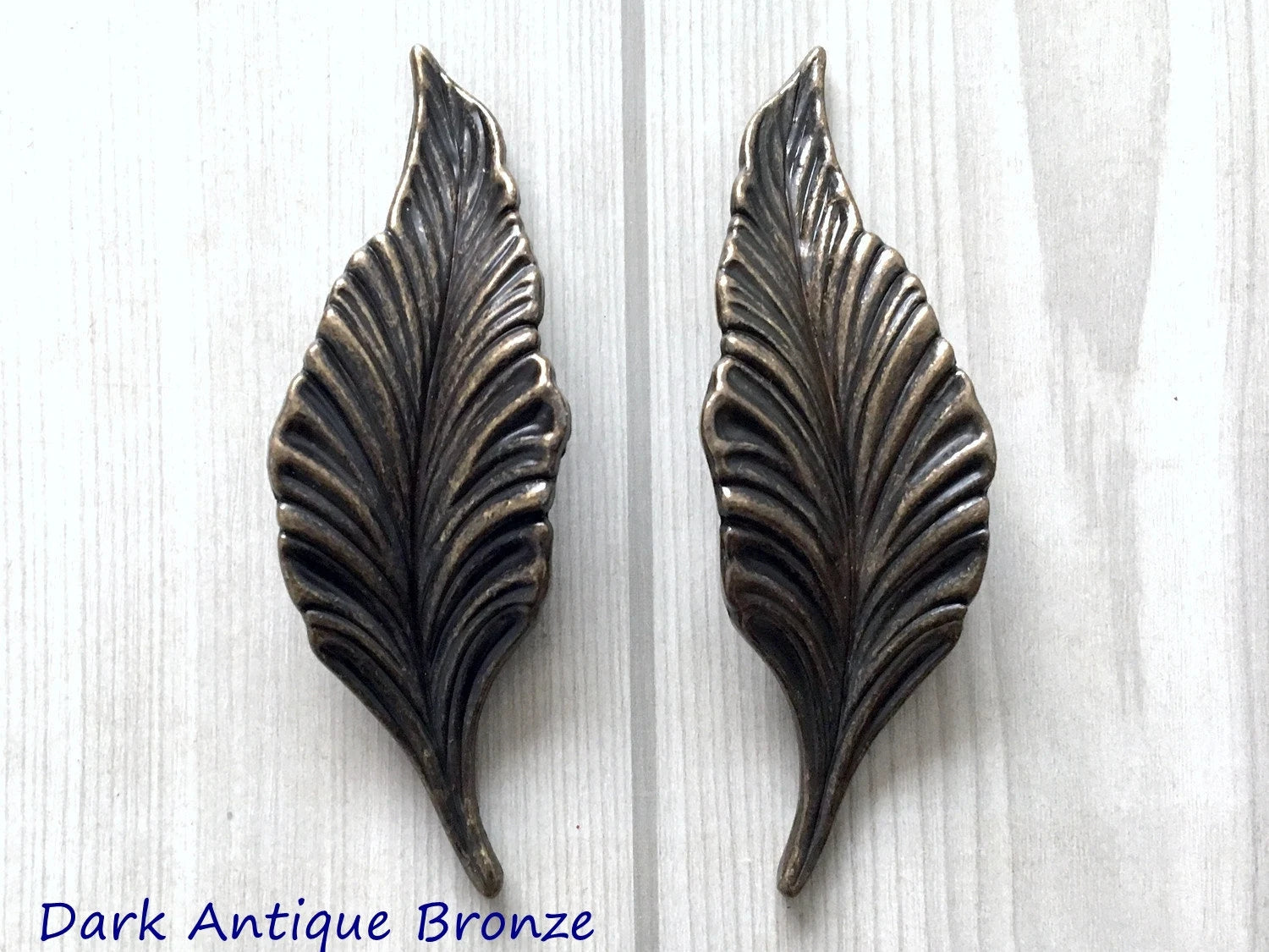 Enhance your furniture with this pair of 1.25" vintage-style leafy drawer pull handles, designed to fit both left and right orientations. Available in Antique Bronze, Dark Antique Bronze, Pearl White, and Black, these handles offer durable finishes that resist wear while adding timeless elegance. Perfect for restoring or upgrading cabinets with a classic, nature-inspired touch.