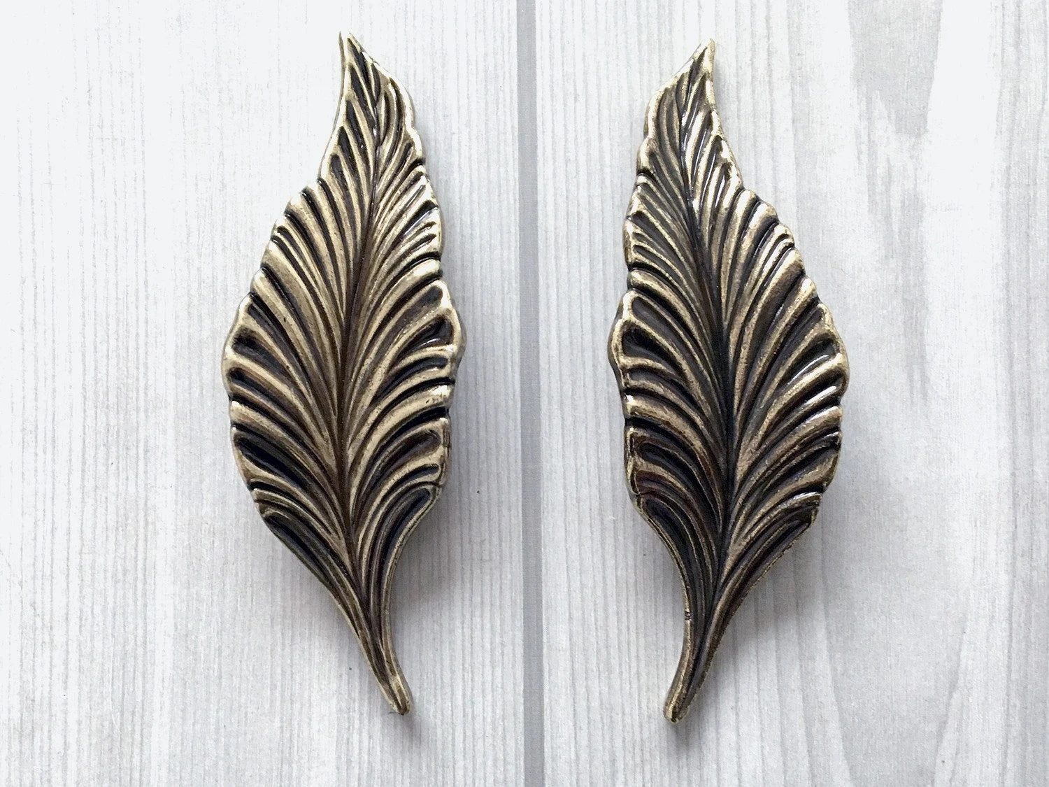 1.25" Vintage Style Leafy Drawer Pull Handles, Left Right Pair