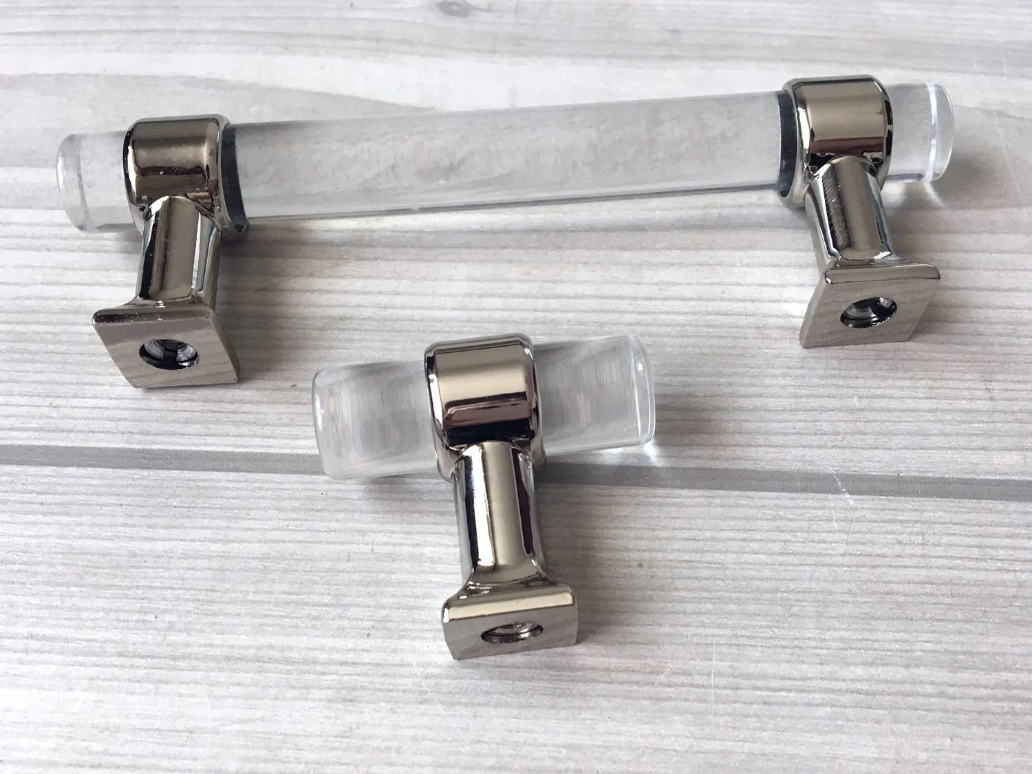 Les poignées de tiroir en Lucite allient l'acrylique transparent à des touches de laiton doré brossé, offrant un style shabby chic sophistiqué qui sublimera n'importe quel meuble. Disponibles avec plusieurs espacements de trous, elles offrent des options polyvalentes pour remplacer facilement les poignées existantes. Ces poignées d'armoire rafraîchissent non seulement l'apparence de vos meubles, mais offrent également une fonctionnalité durable et une esthétique raffinée. Idéales pour moderniser tiroirs et armoires avec une touche subtile et élégante.