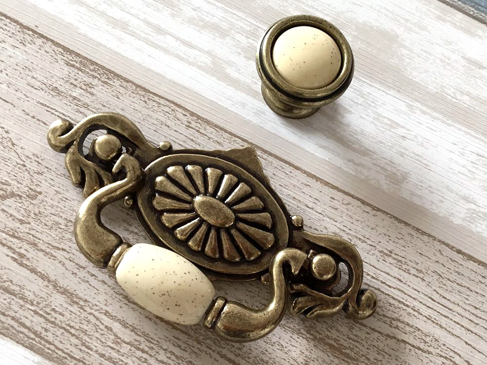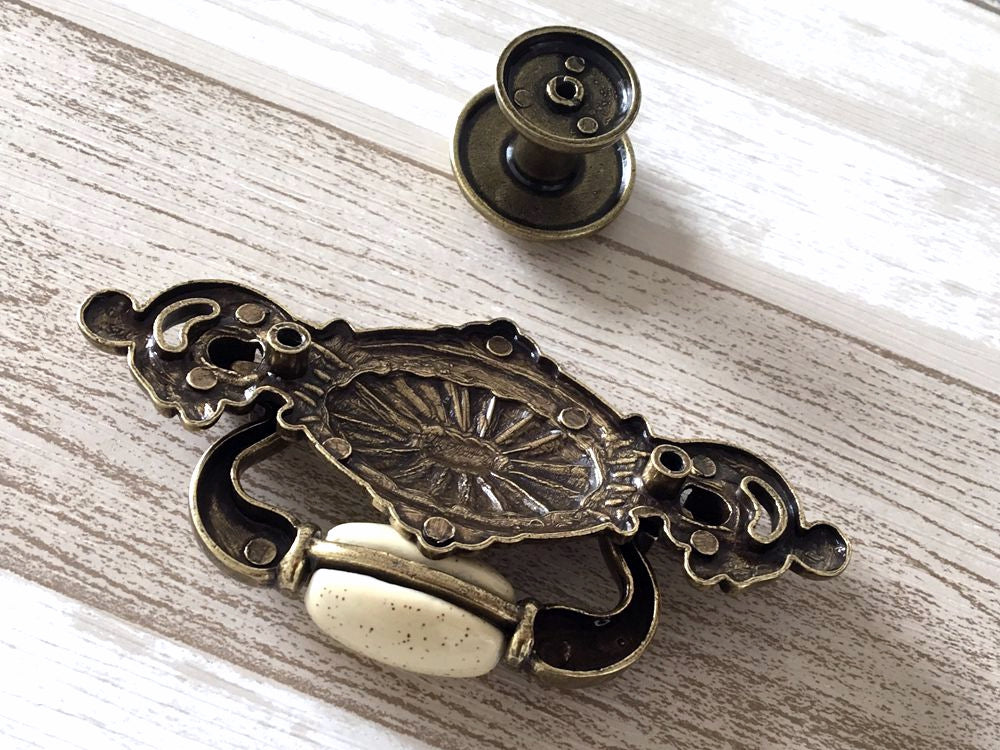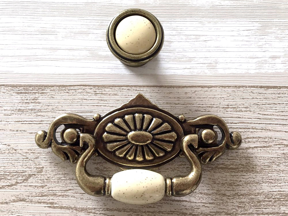 These 2.25" centers vintage-style drop bail drawer pulls in cream antique bronze offer a classic touch for cabinetry. Crafted with an antique bronze finish and a soft cream tone, they provide durable functionality while enhancing the look of traditional or vintage furniture. Their precise drop bail design ensures comfortable grip and easy operation, making them ideal for restoration projects or elegant home upgrades.