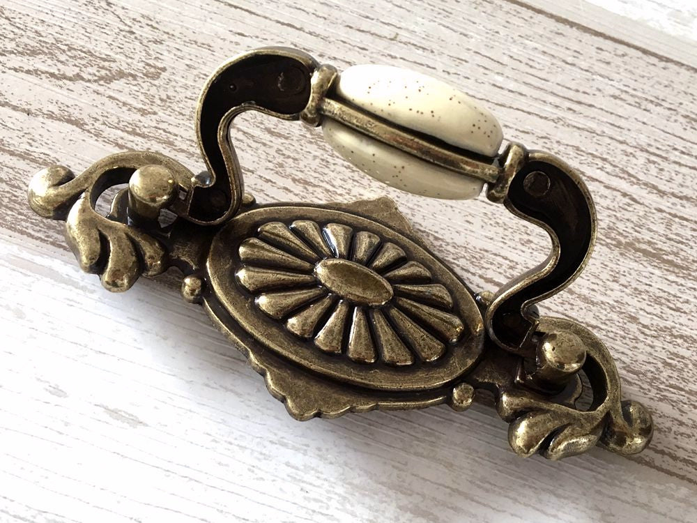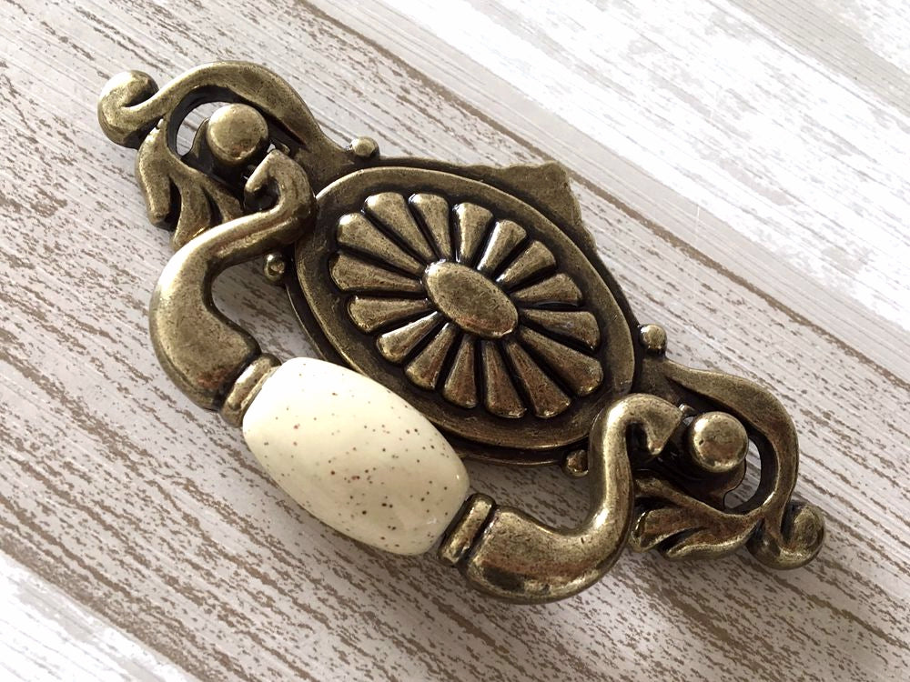 2.25" Centers Vintage Style Drop Bail Drawer Pulls, Cream Antique Bronze