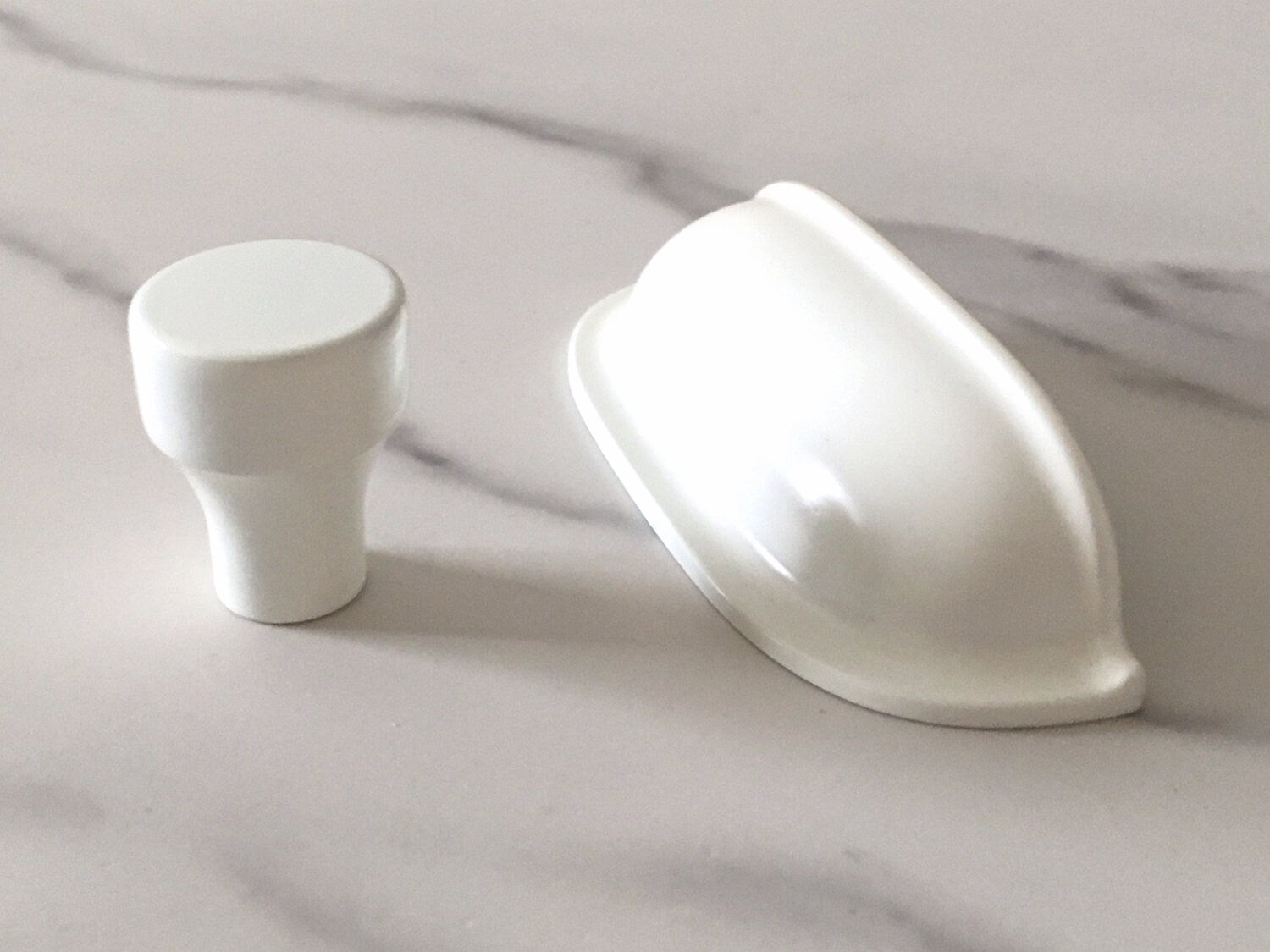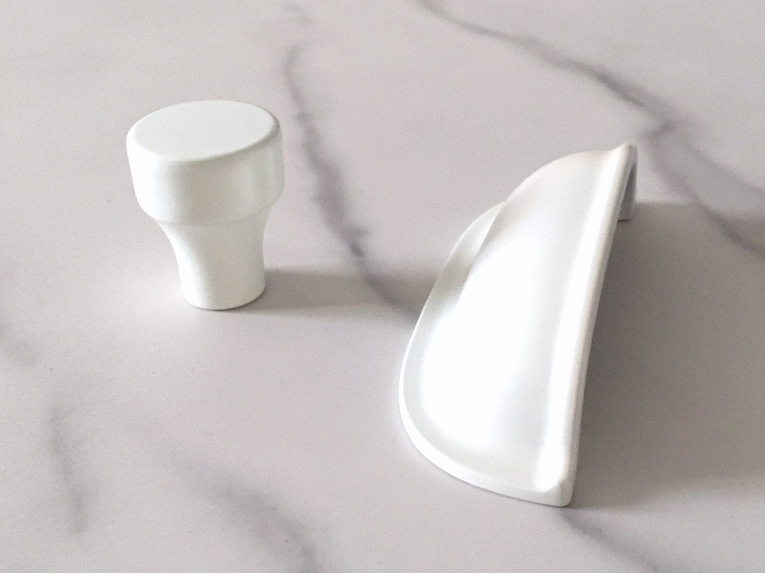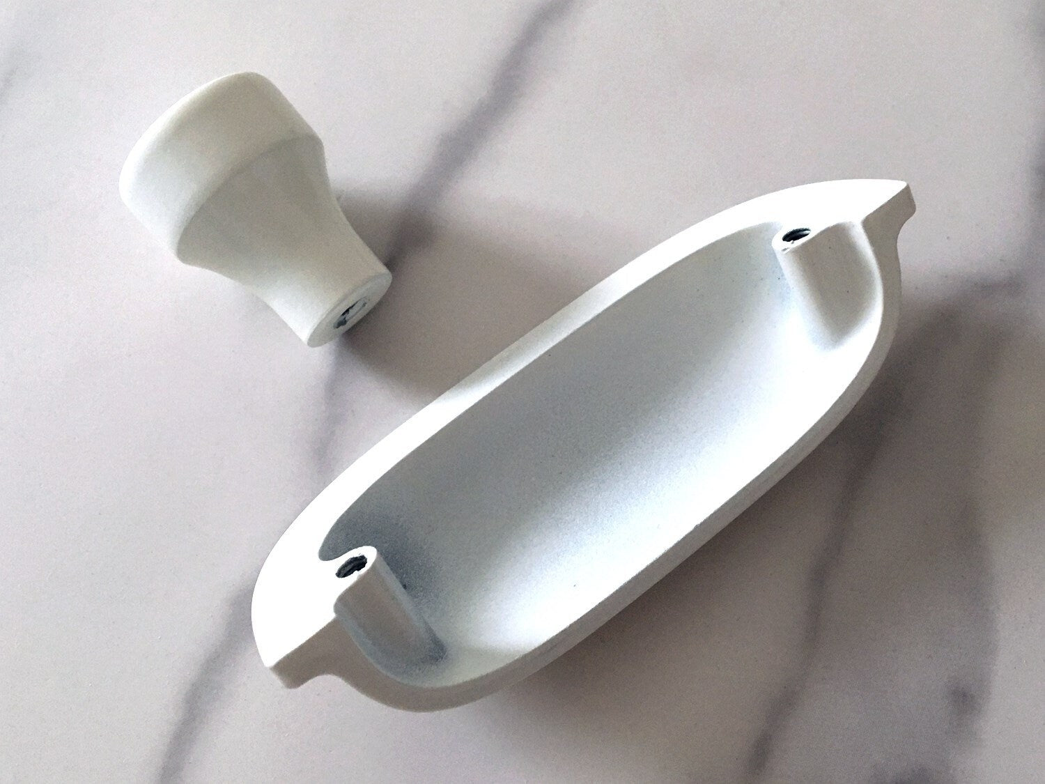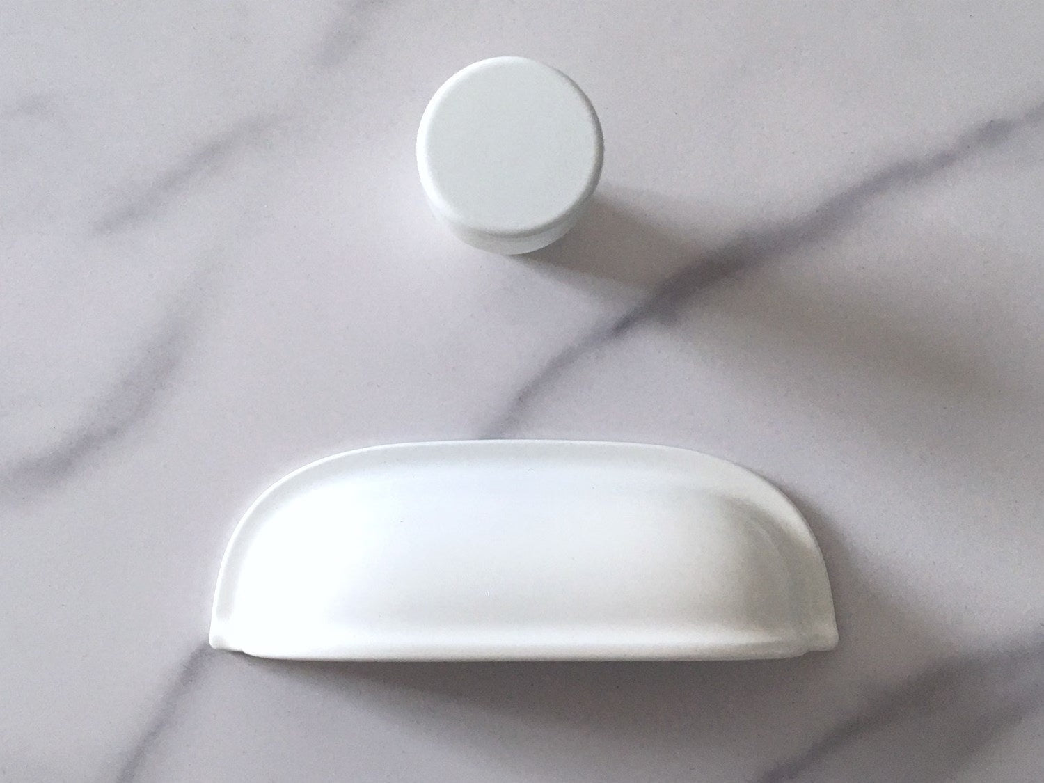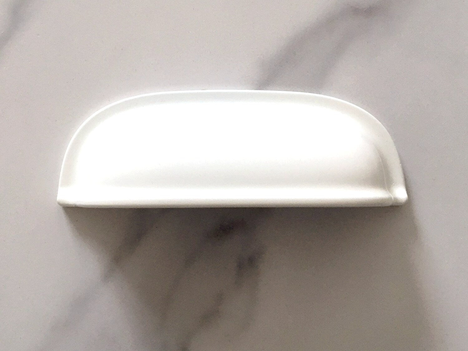 Enhance your cabinetry with these 2.5" centers white cup drawer pulls paired with matching knobs. Crafted for precise fit and smooth operation, their clean white finish offers a timeless look that complements a variety of décor styles.