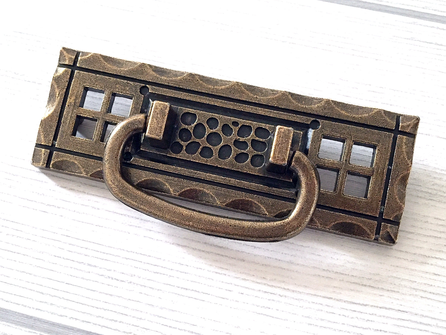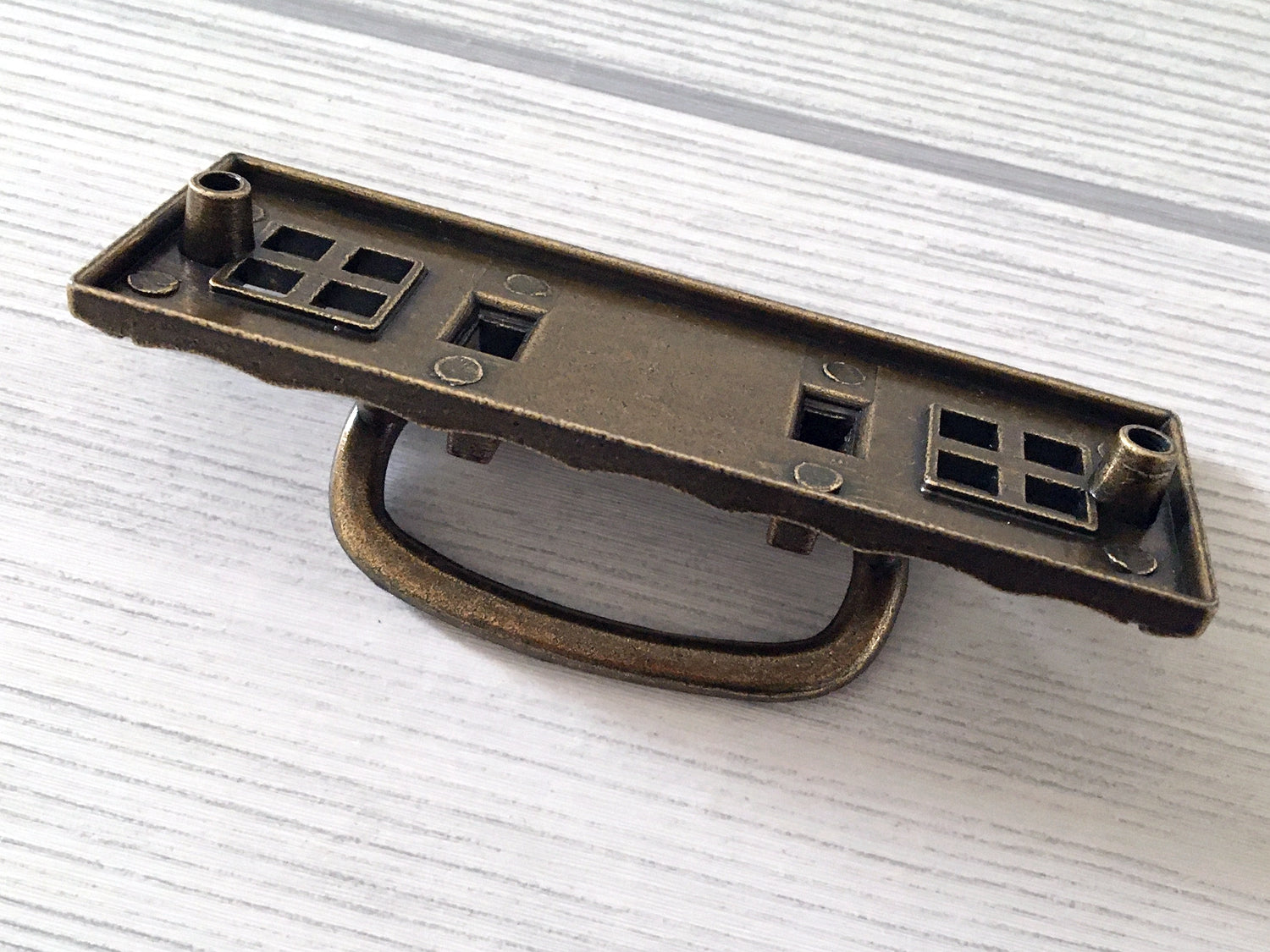 3.25" Antique Bronze Drop Bail Drawer Pull with Backplate, Vintage Style