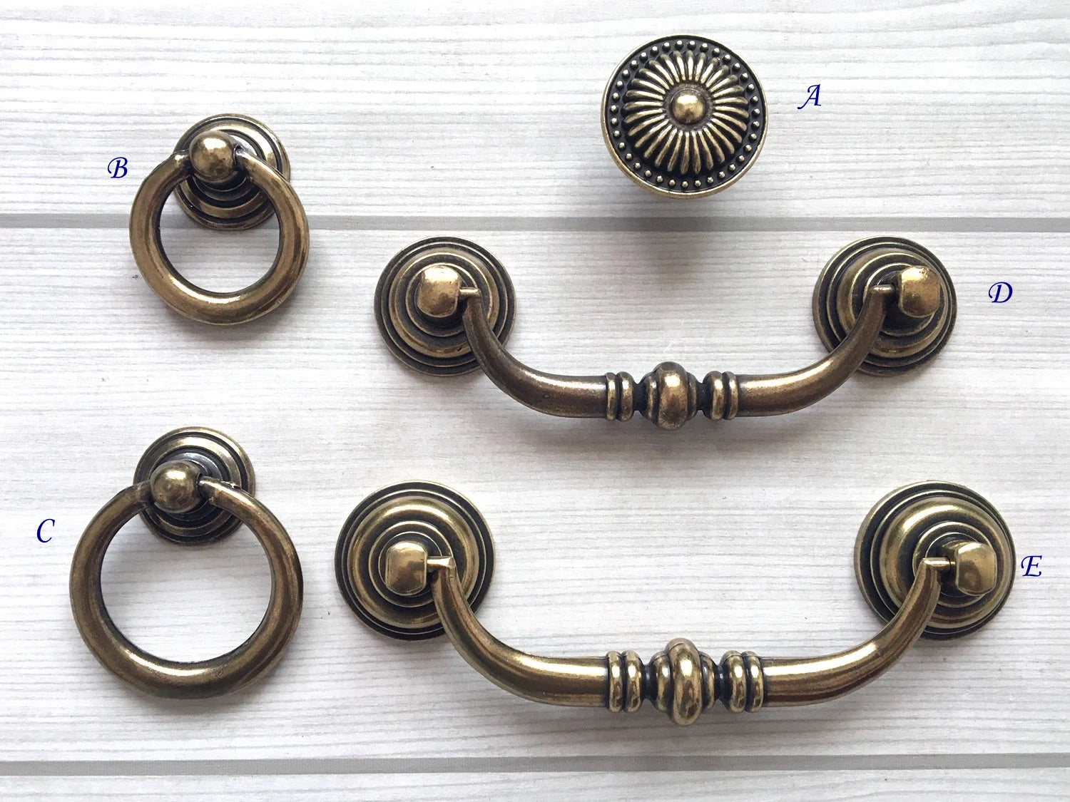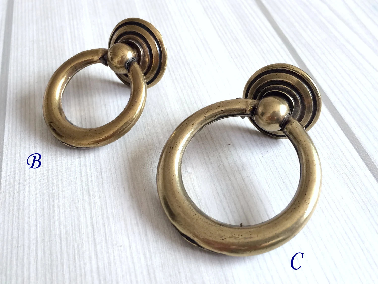 Poignée pivotante à anneau pendant en argent antique de 3,5" et 4,25"