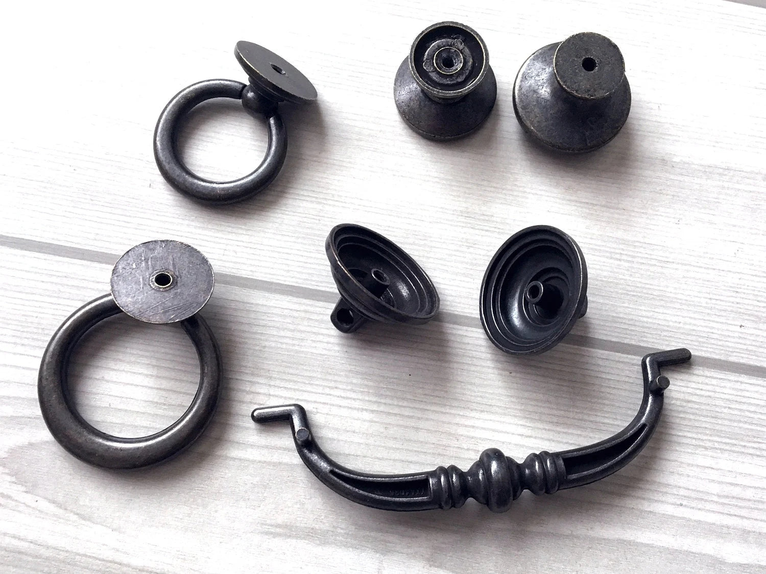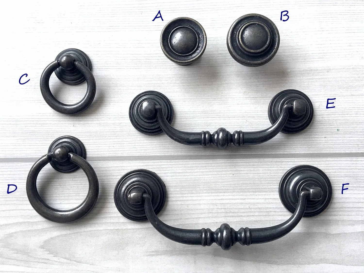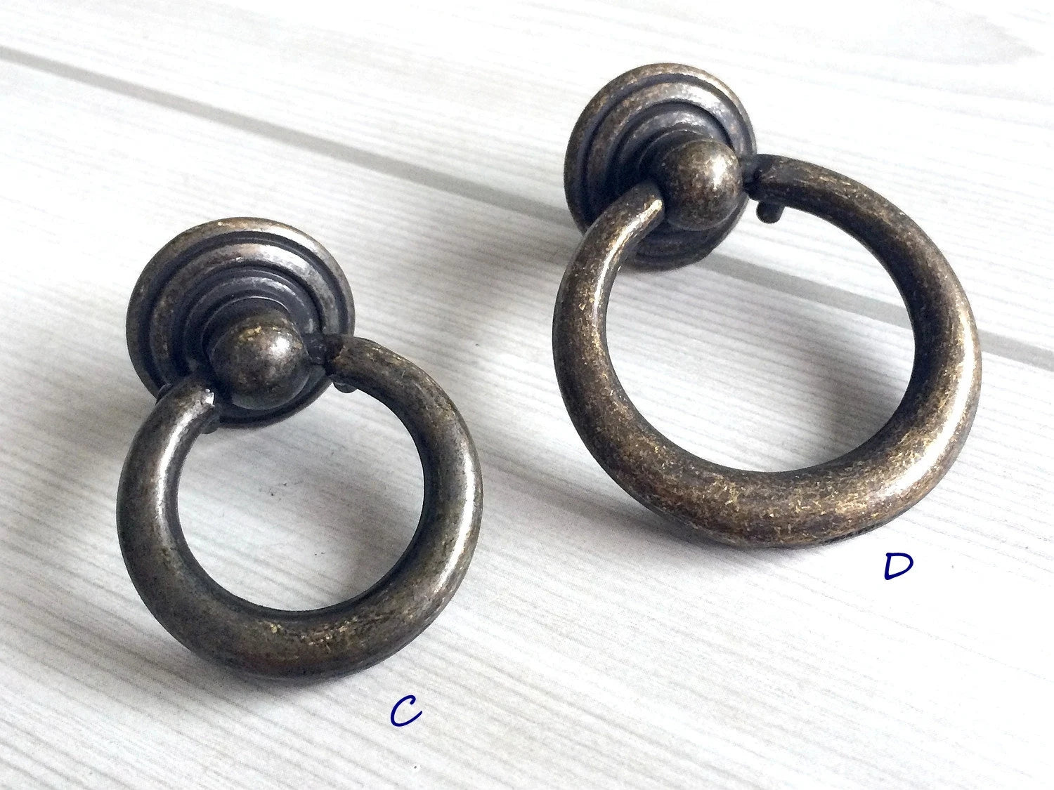 Poignée pivotante à anneau pendant en argent antique de 3,5" et 4,25"