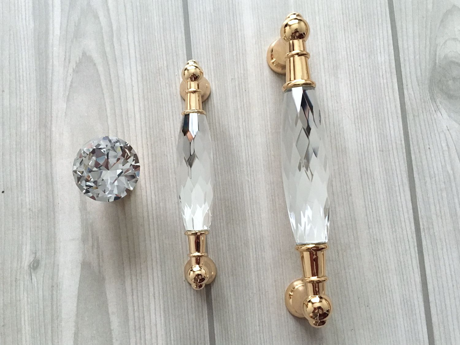 3.75" 5" Gold Crystal Cupboard Pull, Glass Cabinet Handle