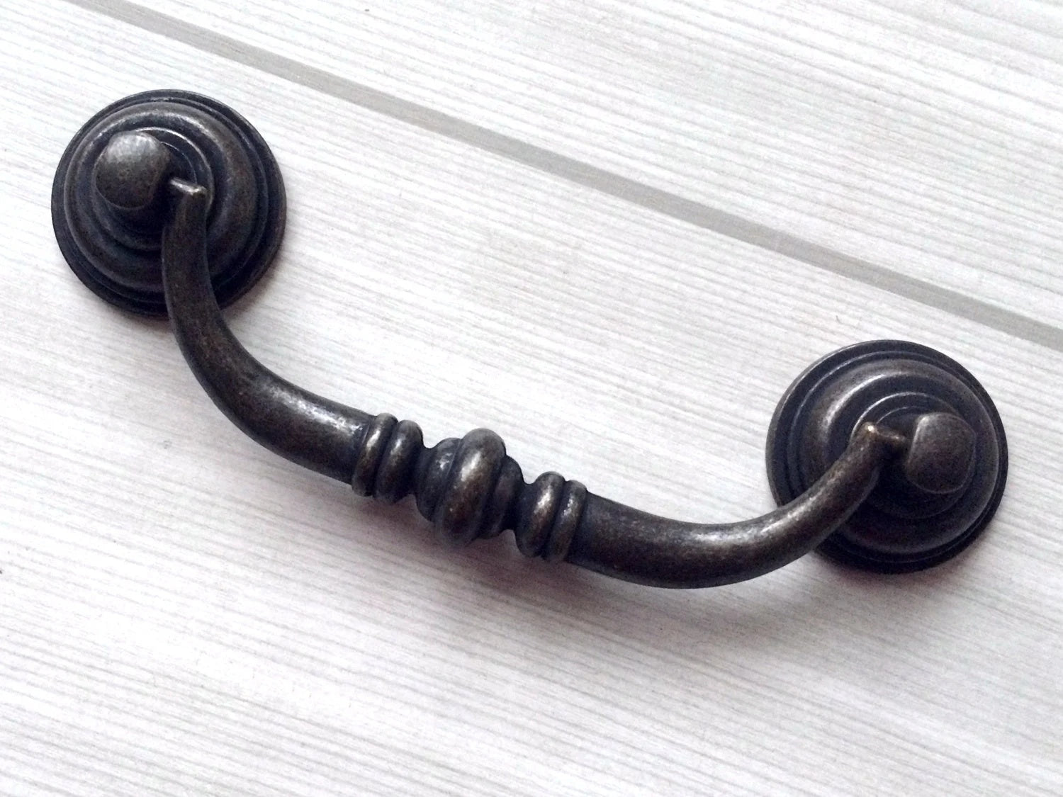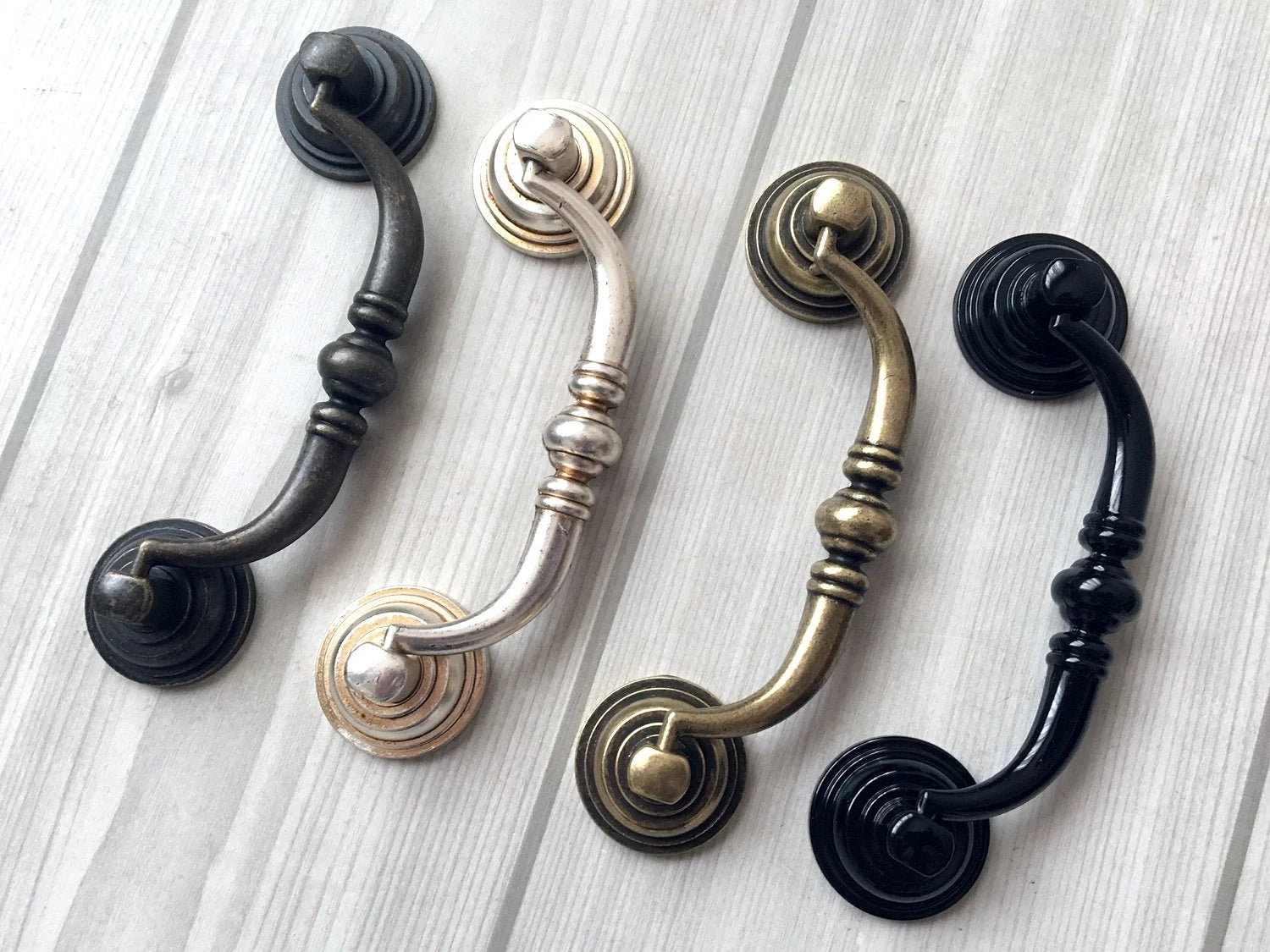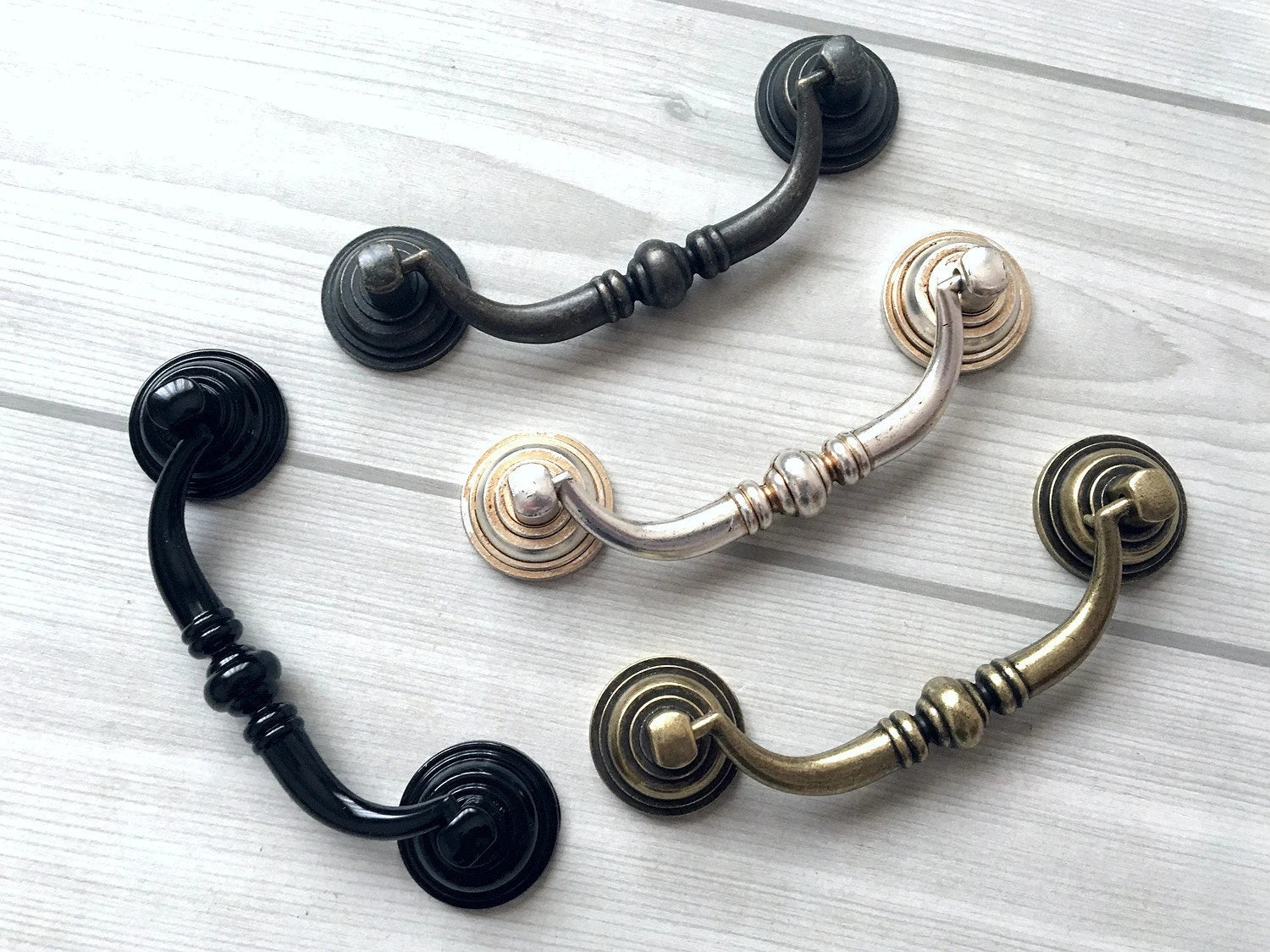 These 4-1/4 inch centers drawer pulls combine antique bronze and silver finishes to create a vintage-style bail handle that enhances the character of your furniture. Designed for easy installation, they offer both durability and timeless appeal, making them ideal for restoring or upgrading drawers with a classic touch.