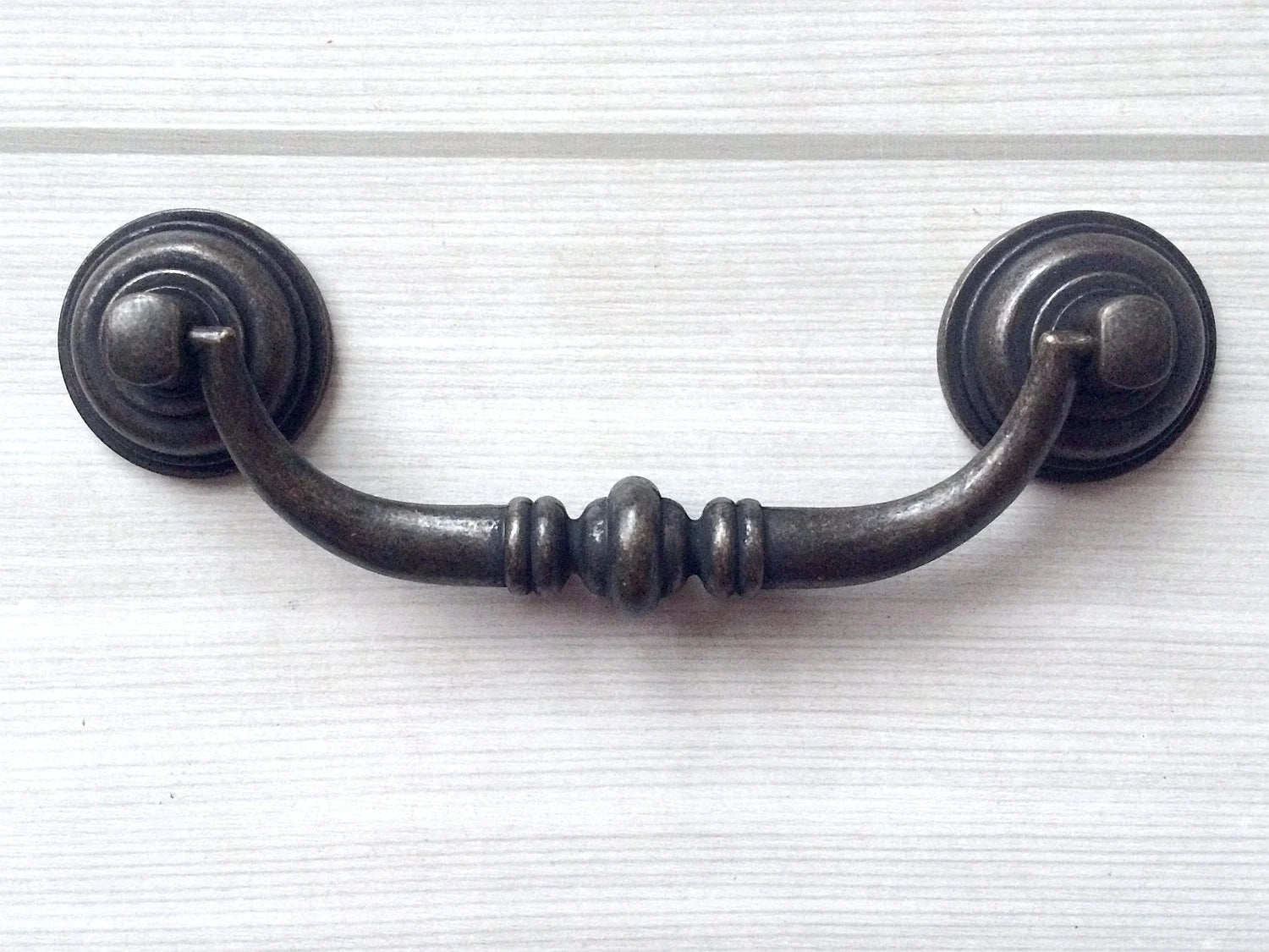 4-1/4 Inch Centers Drawer Pulls Antique Bronze Silver Bail Handle 4.25 Holes