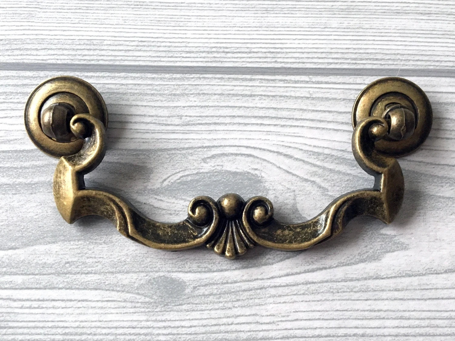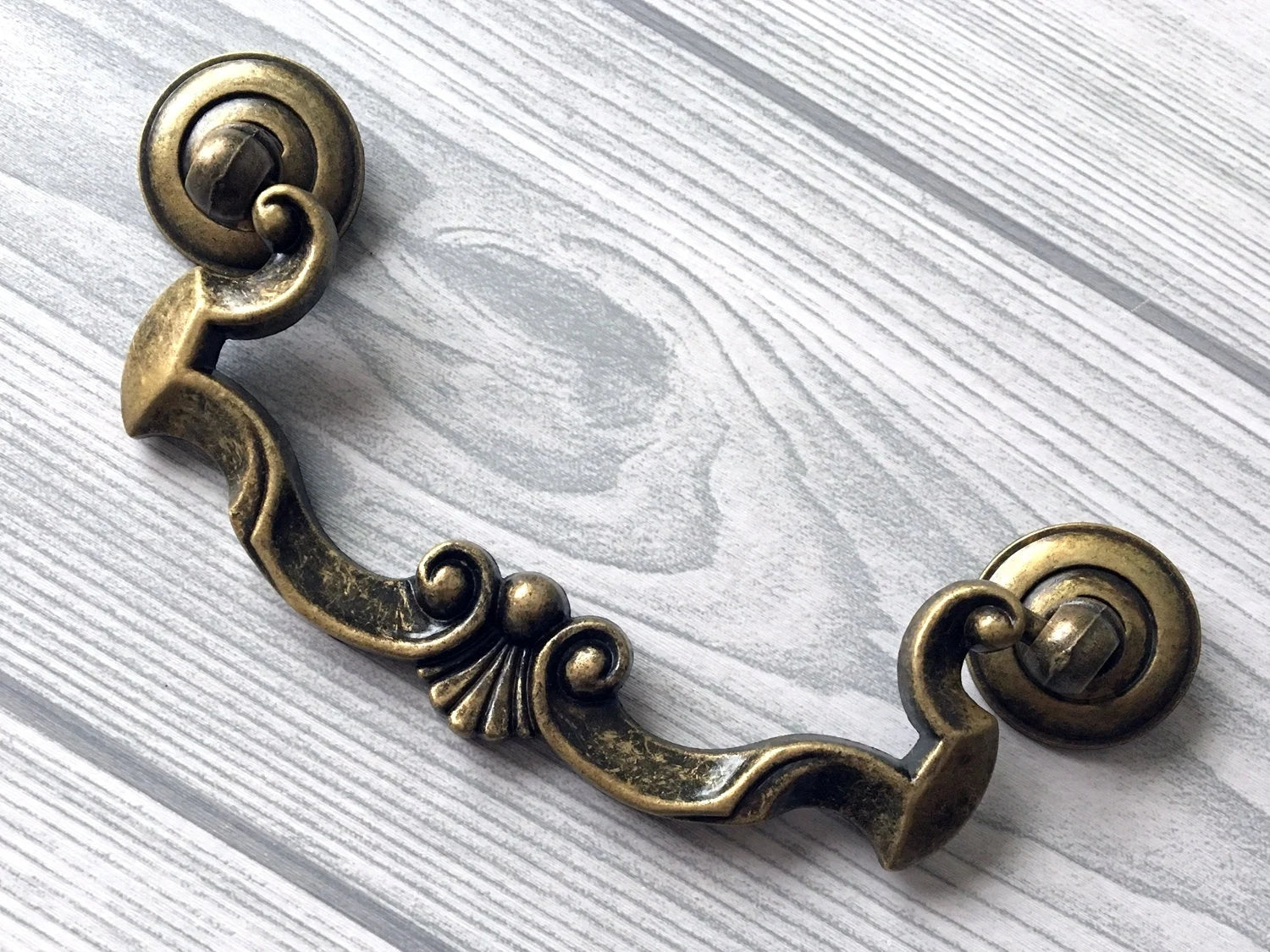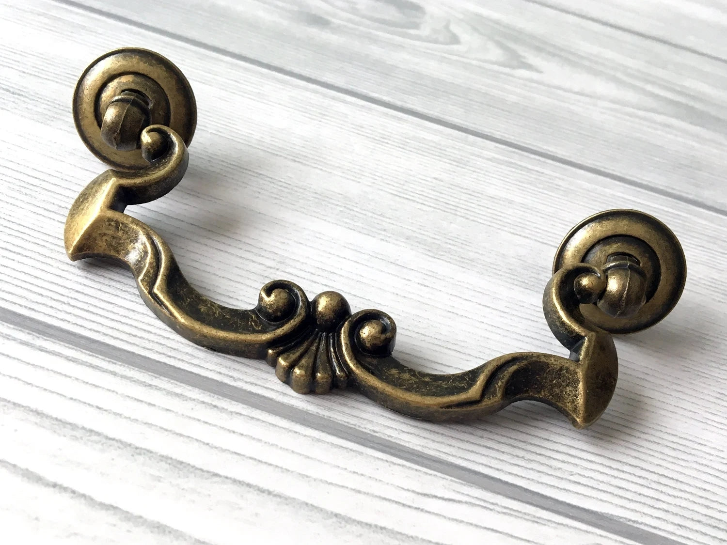 Ces poignées de tiroir de 10,8 cm (4,25 po) en bronze antique offrent une esthétique vintage idéale pour restaurer ou moderniser des meubles. Avec un entraxe précis de 10,4 cm (4 1/4 po), elles s'adaptent aux tailles difficiles à trouver et constituent un remplacement idéal pour les quincailleries plus anciennes. Conçues pour leur taille et leur style, ces poignées allient design classique et fonctionnalité.