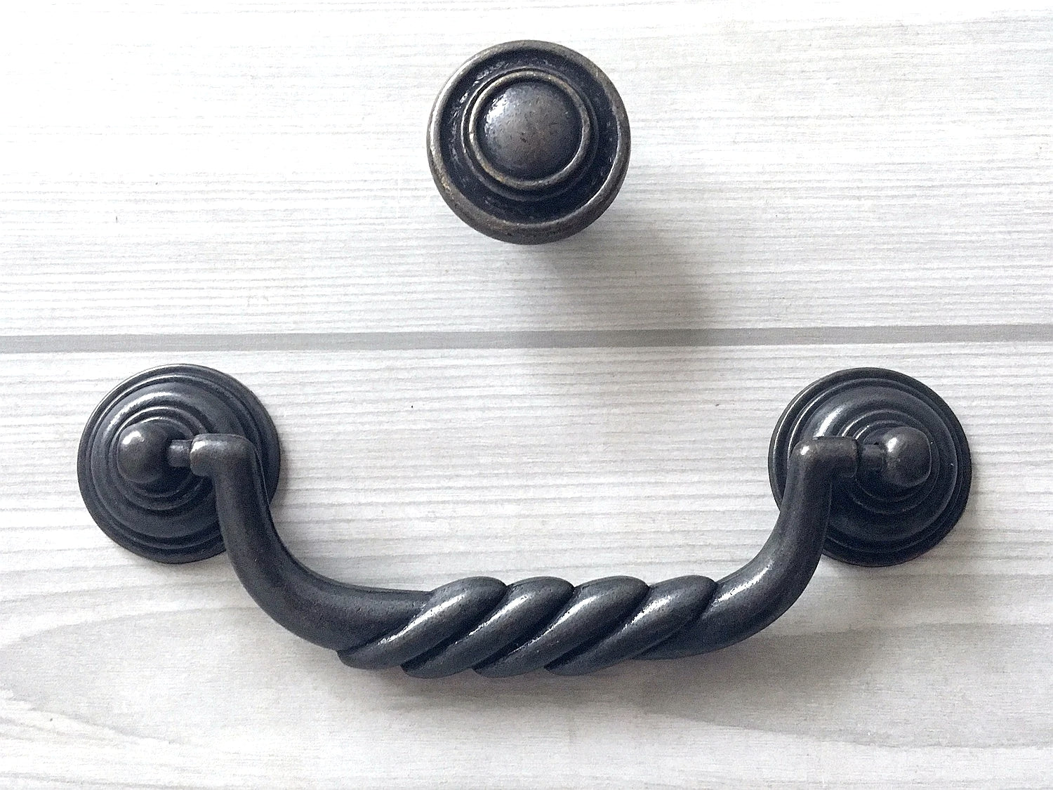 These 4 1/2" bail drawer pull handles feature and dark antique bronze finish that adds a timeless, elegant touch to your furniture. Designed with 4.5-inch centers, they provide a comfortable grip and easy installation. Ideal for restoring or upgrading drawers, these drop handles combine classic style with durable construction for lasting performance.