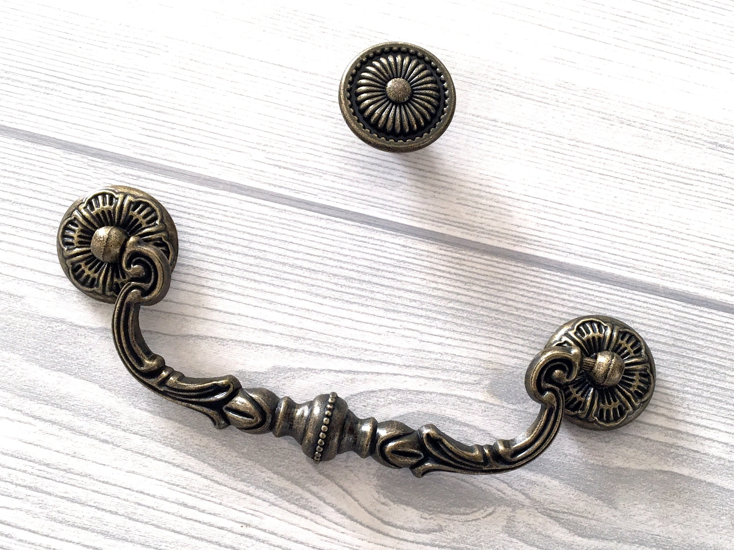 5.25“ Vintage Style Swing Bail Drawer Pull, Round Knob, Antique Bronze