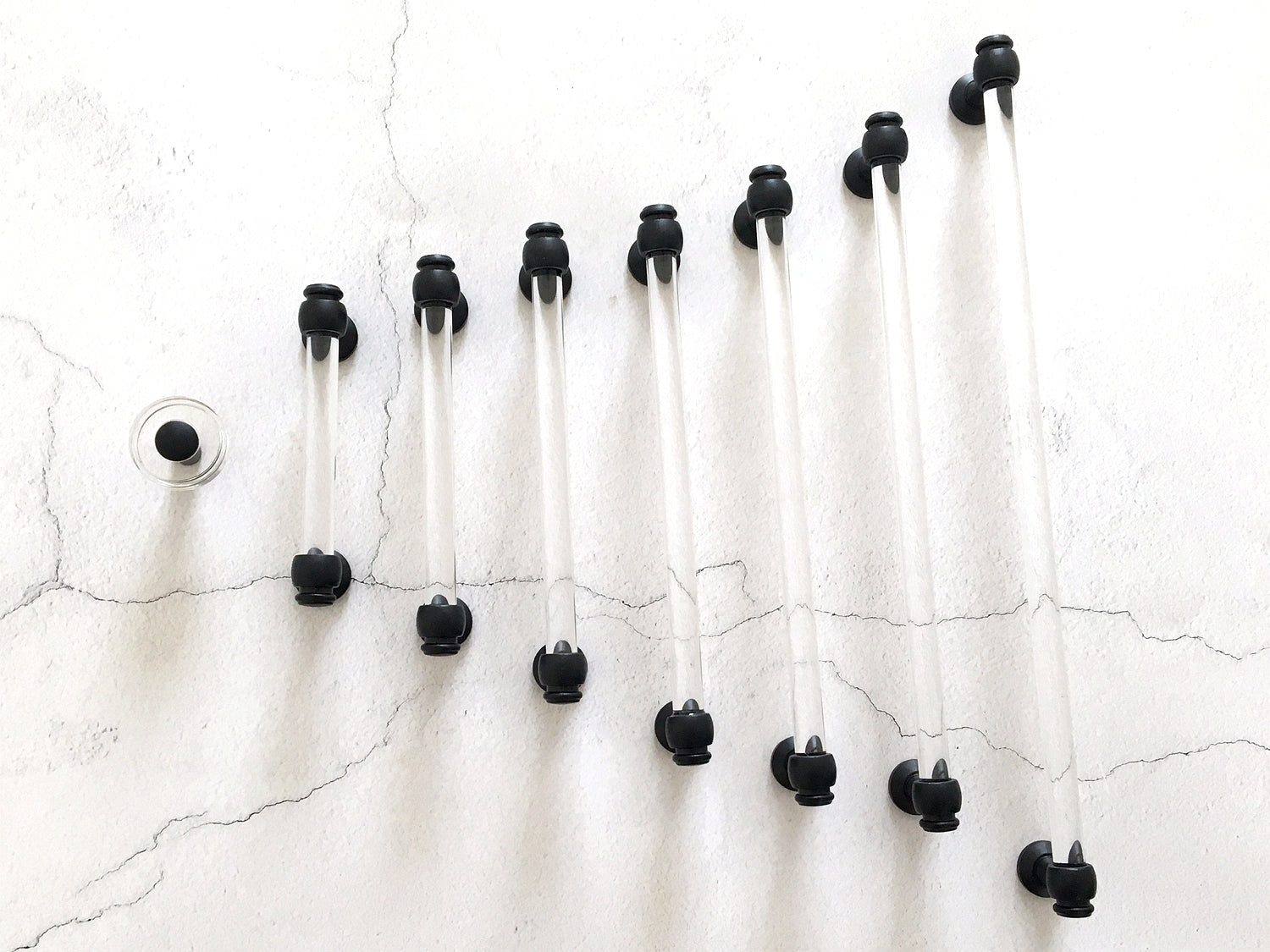 Enhance your kitchen cabinetry with these Acrylic Drawer Pulls featuring sleek Lucite bar handles. The matte black and clear combination provides a modern, stylish contrast that complements various decor styles. Designed for durability and easy grip, these handles offer both aesthetic appeal and practical functionality, making them an excellent choice for upgrading your kitchen hardware with a refined, contemporary touch.
