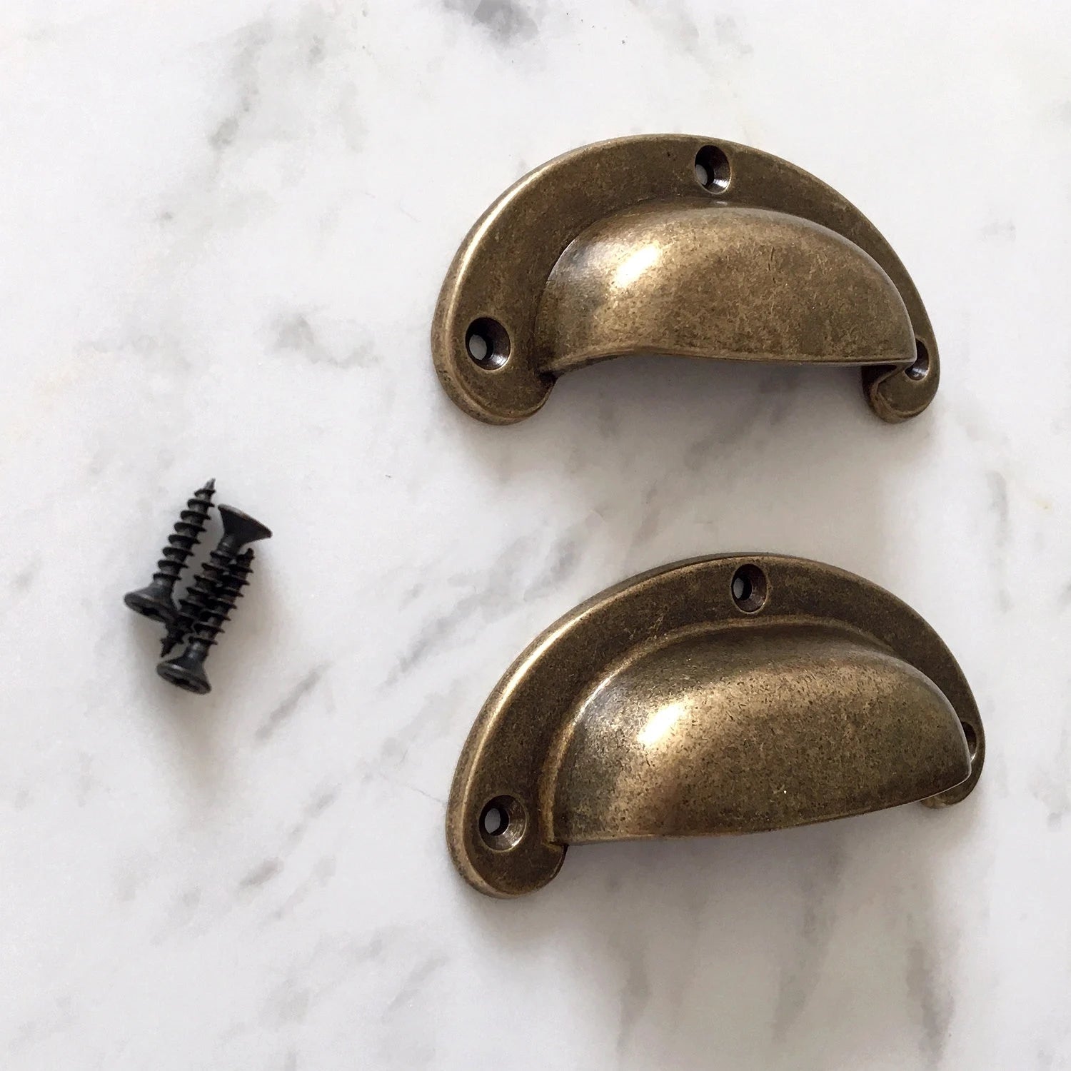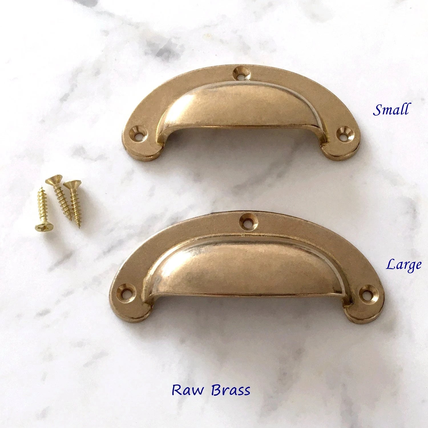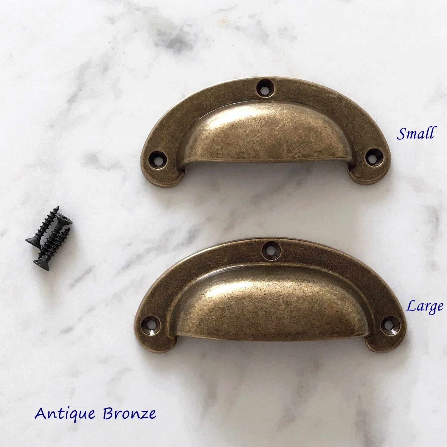 Poignées de tasse en laiton, bronze antique non laqué | Lynns Hardware