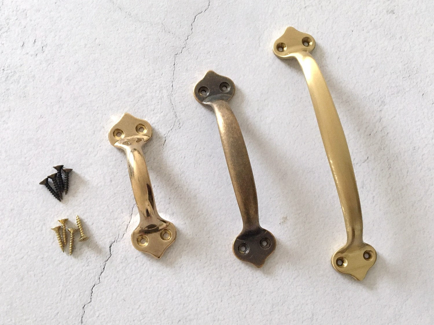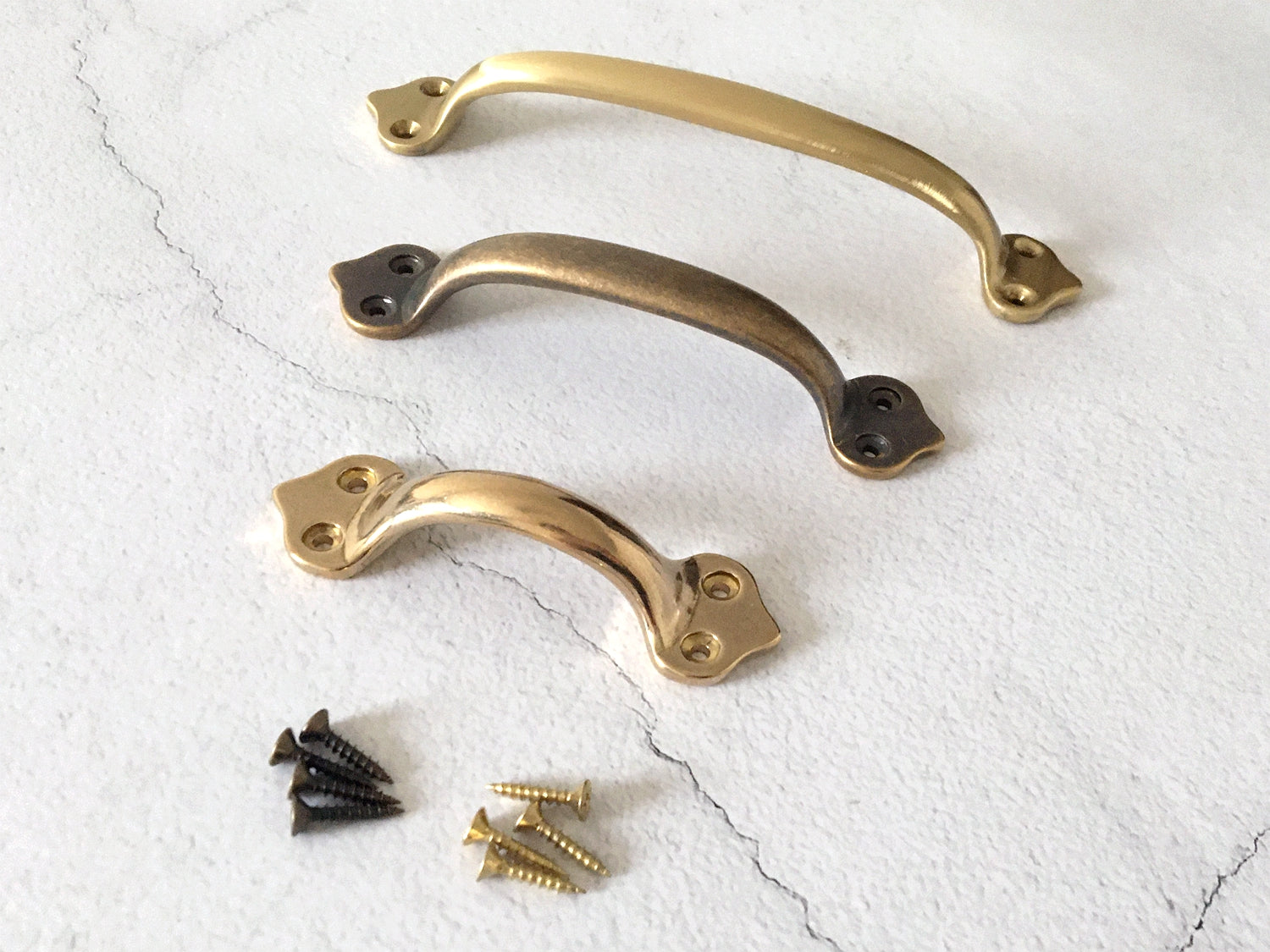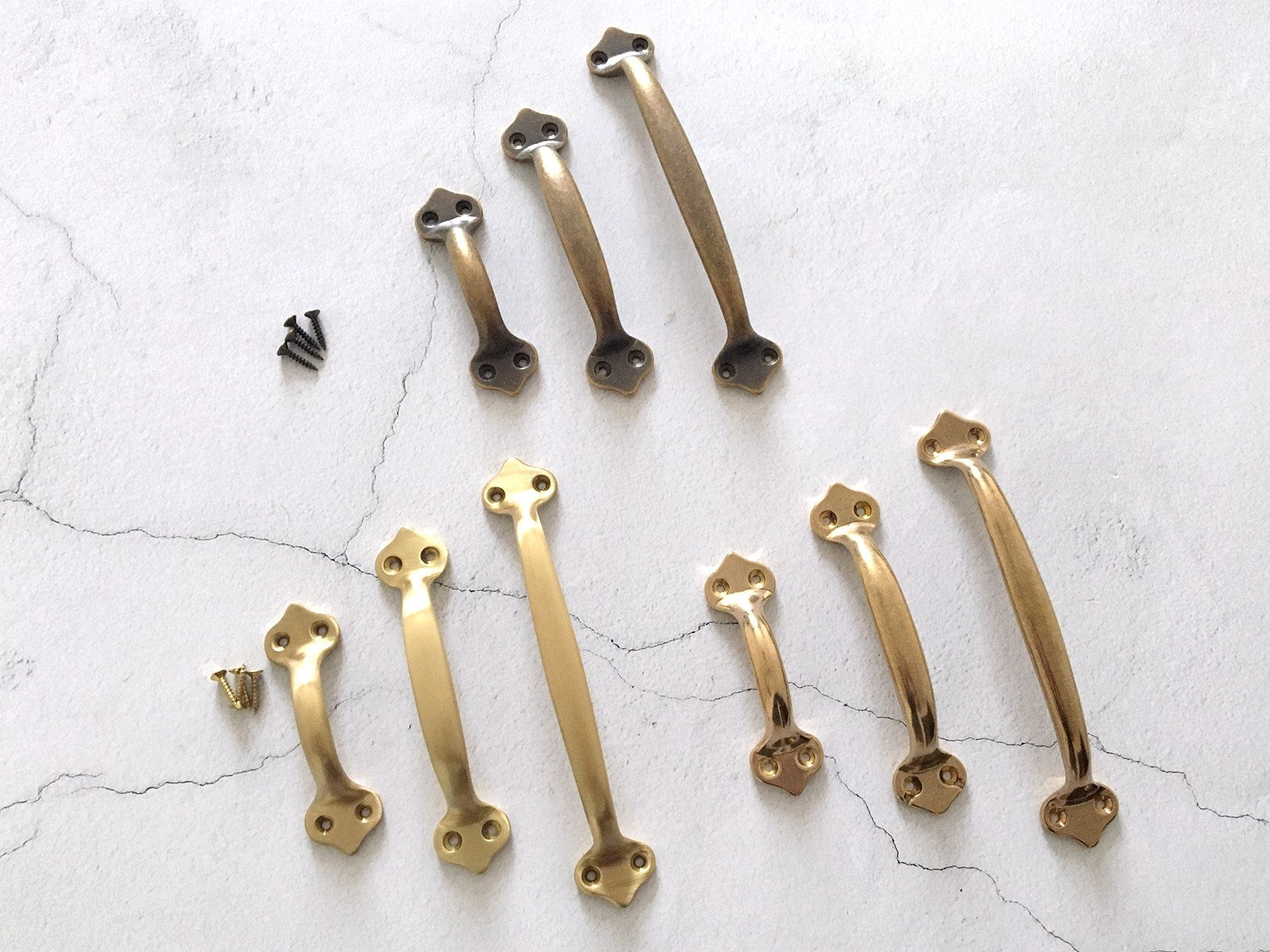 Brass Drawer Pulls, Front Screws, Unlaquered Brass, Brushed Gold, Antique Bronze