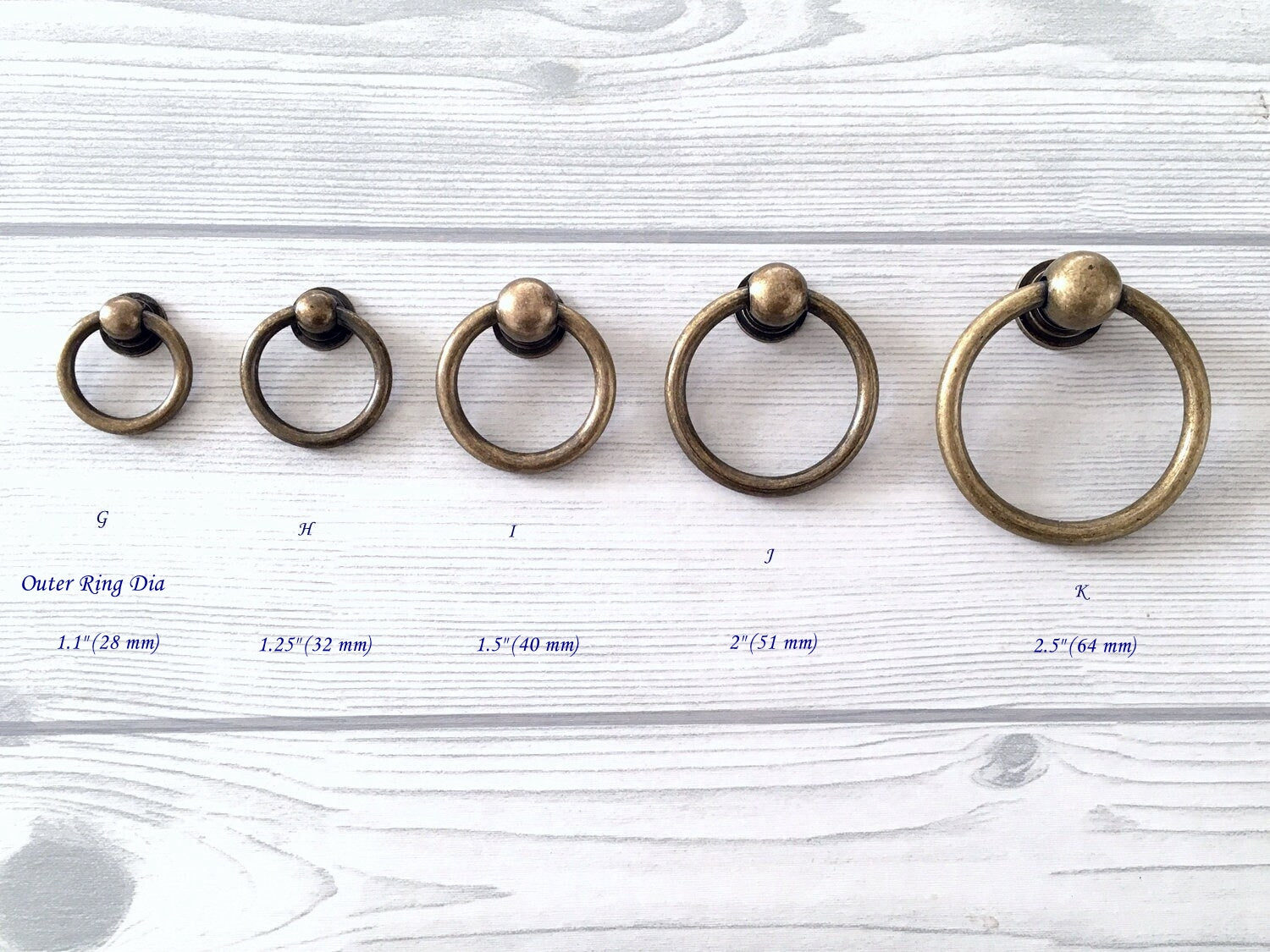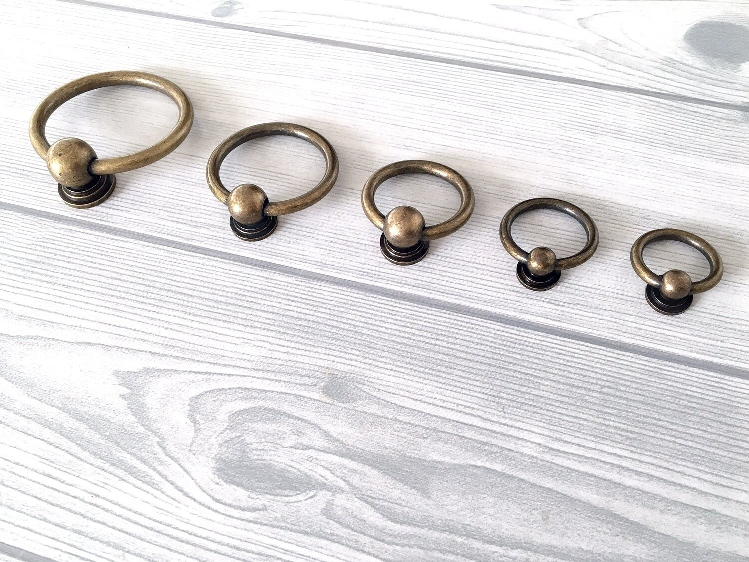 Brass knobs with Ring Pulls Small Drawer Pull Antique Bronze